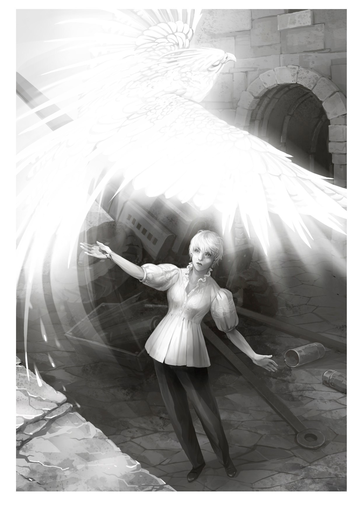 Неожиданно упал заказ на две иллюстрации для Ирины Котовой "Королевская Кровь 10". Первая - Марина (в девичестве Рудлог) привязывает огнедуха Искру к крепостной стене резиденции Дармонширов.