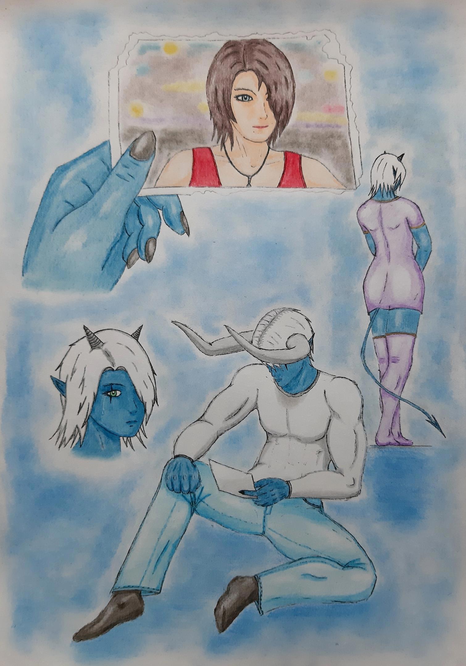 Любовь ранит Автор: Demon Sanya Иллюстрация к ещё не написанному рассказу "Письмо" (рабочее название).Персонажи: Саша, Александр и Лекса.Карандаш.Декабрь 2020.Скетч...Чёрно-белая версия... Этапы отрисовки... огонь, персонажи, фотография, demon sanya universe, демон, любовный треугольник, любовь, девушка, иллюстрация 228 Пожаловаться