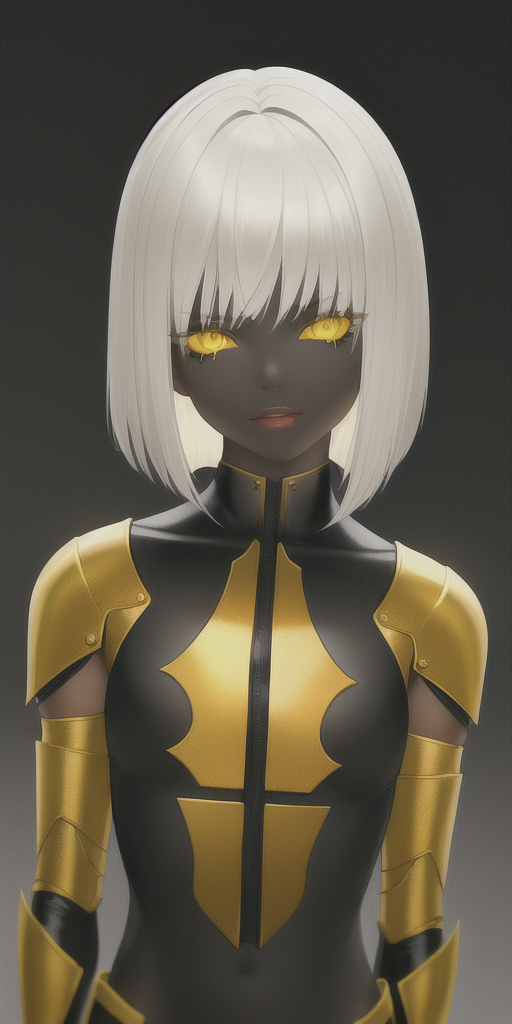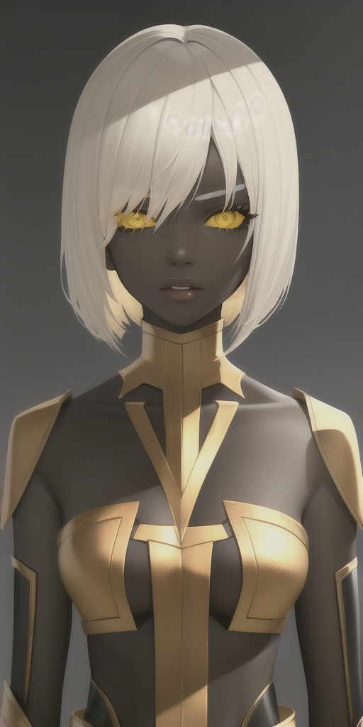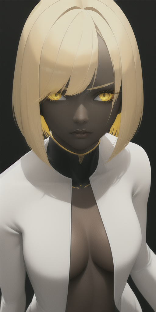 1girl, black skin, horror:1.4, white hair, yellow sclera, from above:1.6, detailed shading, bob cut, straight hair:1.4, straight on, upper body:1.1, metallic skin:1.4, masterpiece, best quality, , anime, detailed eyes, (dramatic lighting), detailed face, detailed skin, (realistic), masterpiece, best quality Negative prompt: purple dot, purple dots, lowres, bad anatomy, bad hands, text, error, missing fingers, extra digit, fewer digits, cropped, worst quality, low quality, normal quality, jpeg artifacts, signature, watermark, username, blurry, bad feet, futa, futanari Steps: 30, Sampler: Euler a, CFG scale: 12, Seed: 3664802177, Size: 512x1024, Model hash: ded57526