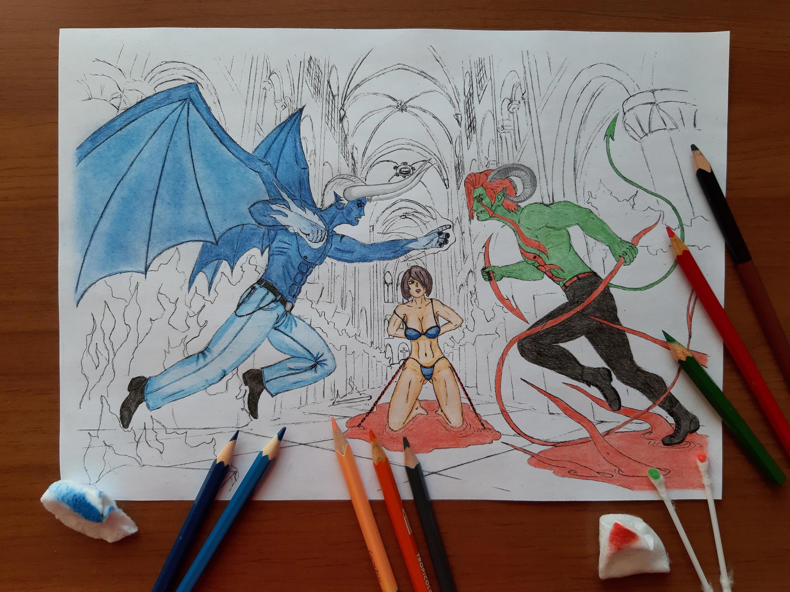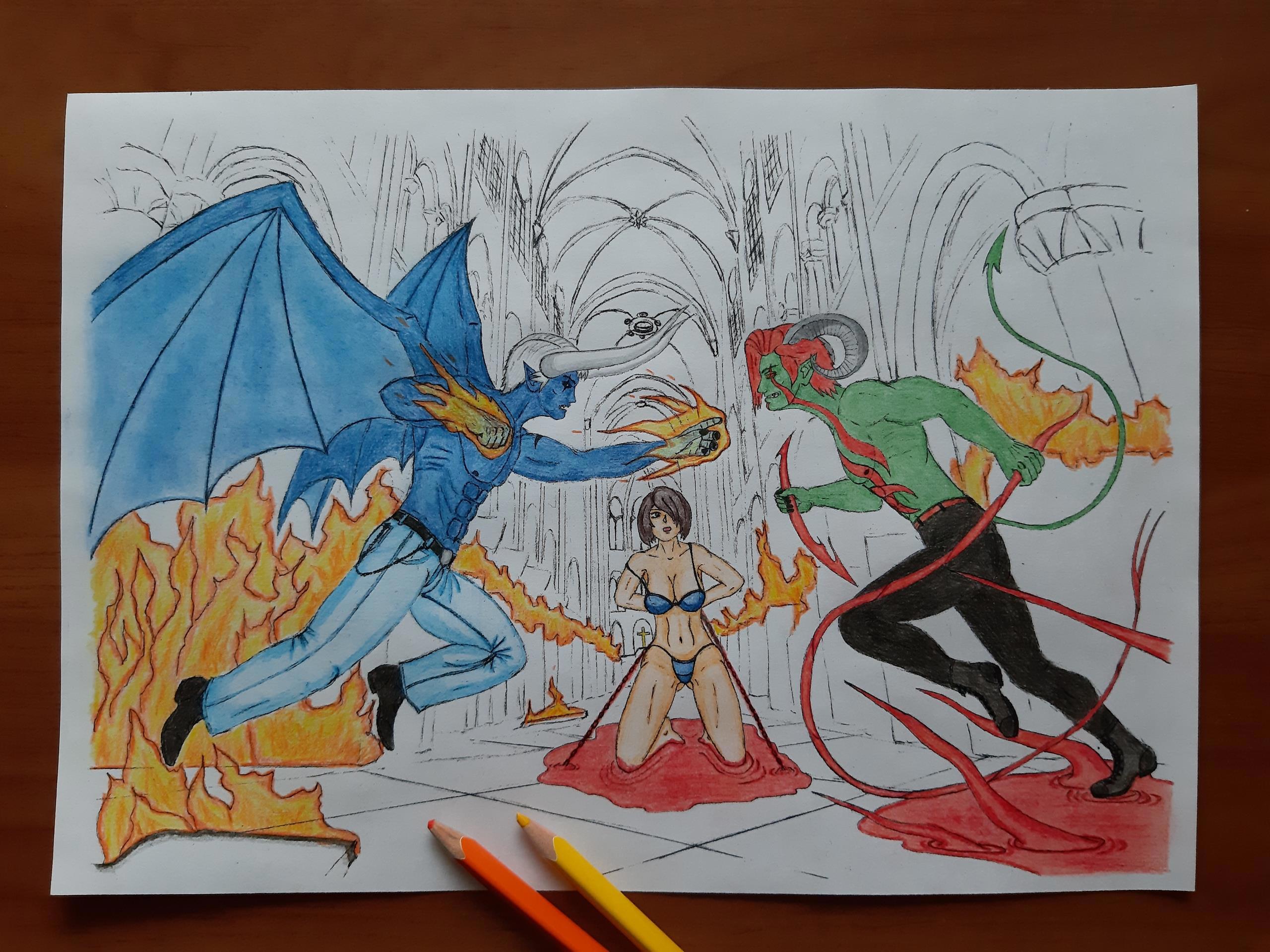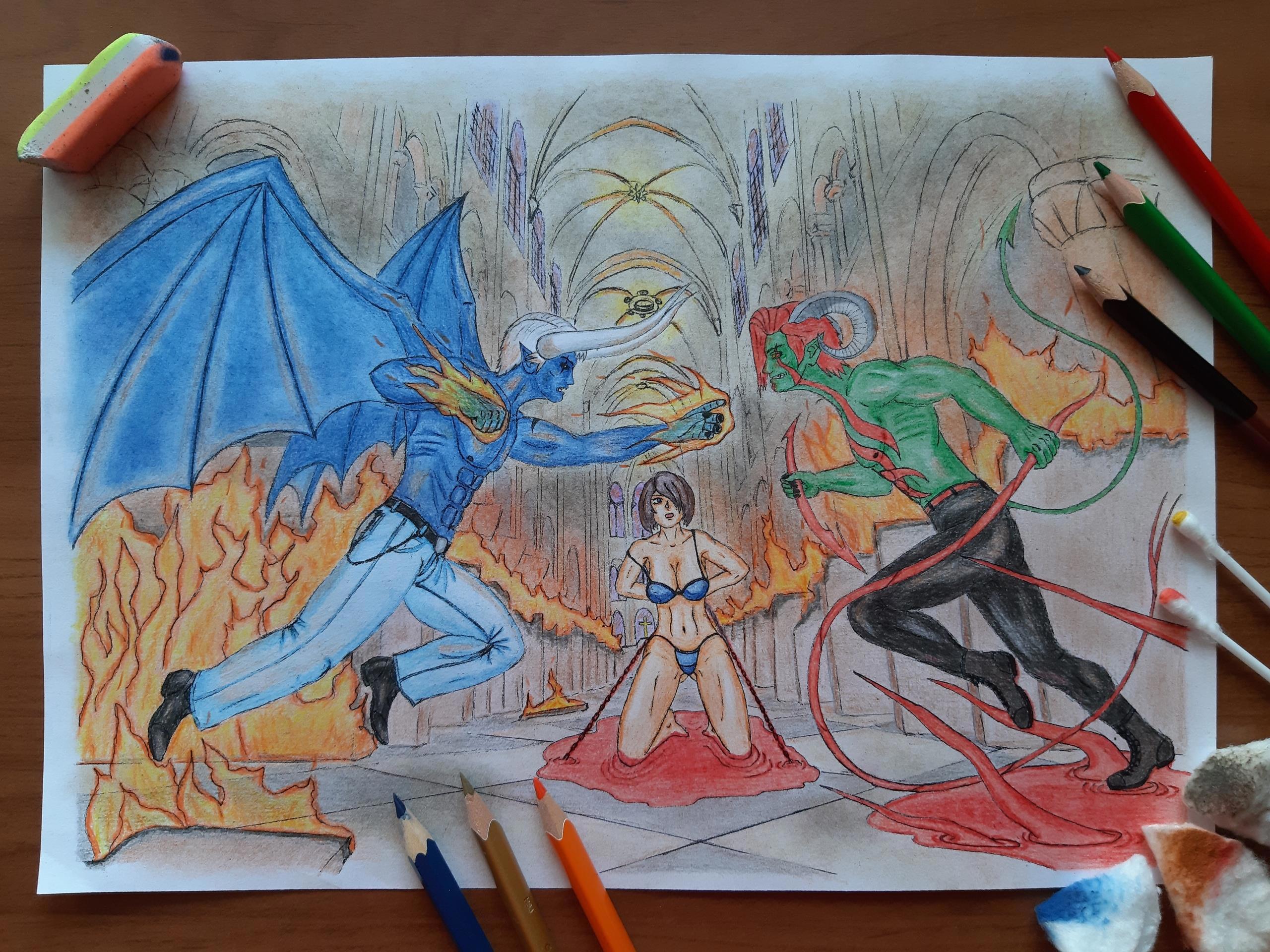 Кровь и огонь Автор: Demon Sanya Иллюстрация к рассказу "Кровь и огонь".Персонажи: Александр, Саша и Бладиан.Карандаш.Май 2021.Скетч...Чёрно-белая версия... Этапы отрисовки... огонь, персонажи, сражение, фэнтези, demon sanya universe, девушка, демон, иллюстрация, кровь 324 Пожаловаться