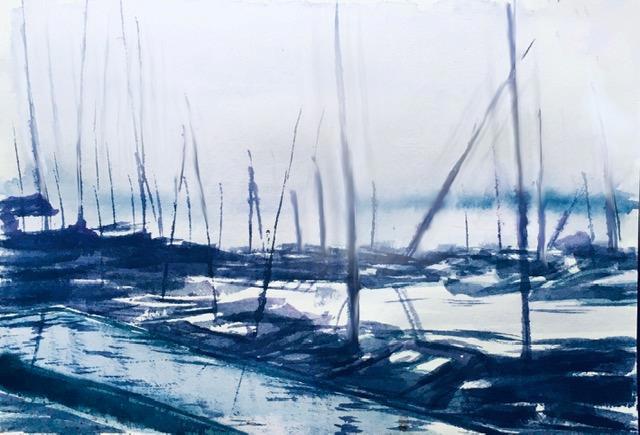 А "стоянку яхт" вообще пришлось разгребать сухой кистью, ровнять мачты - на влажном они расплылись ( Зато получился совершенно мокрый пирс и в целом такой... затяжной дождь, что ли...