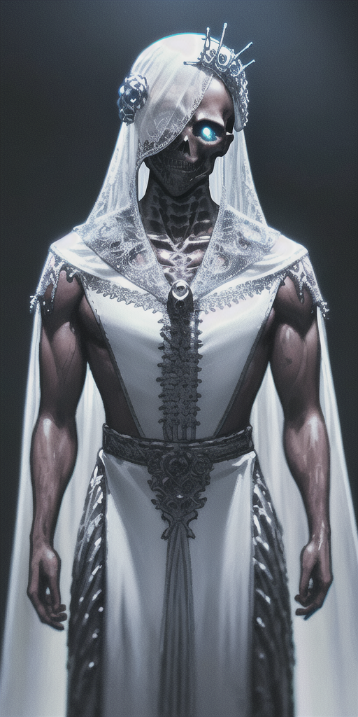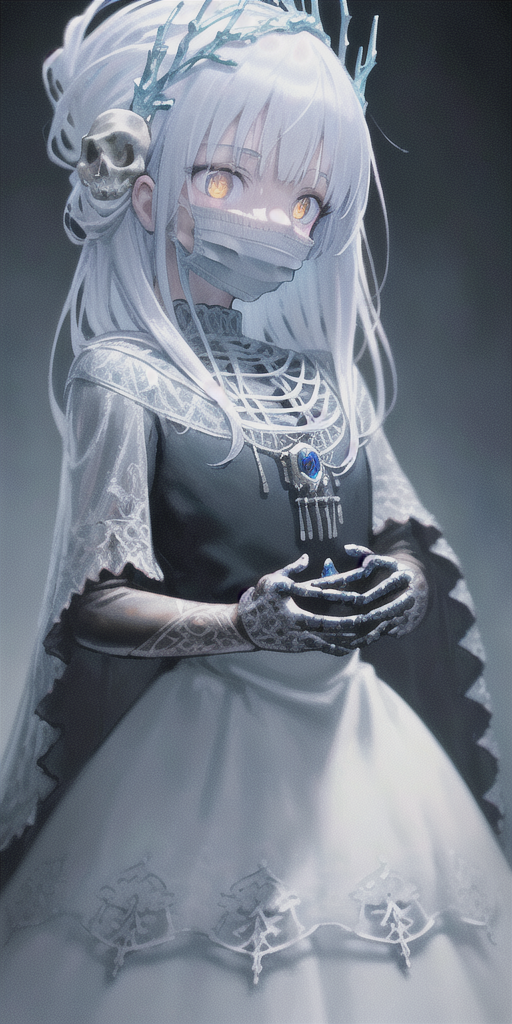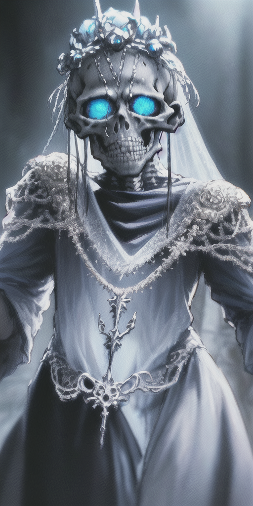 chromatic aberration, depth of field, soft lighting, masterpiece, best quality, intricate, tone mapped, highly detailed, artstation, concept art, smooth, sharp focus, dramatic lighting, highly detailed artwork, cinematic, hyper realistic painting, trending on Artstation, 8K, incredible shadows, realistic, (highly detailed background:1.0), a skeletonized man with bits of flesh hanging off his bones, his skull is covered in icicles and frost, intricate carving, wearing a face mask, glowing eye sockets, wearing a frozen blue crown Negative prompt: easynegative, (bad_prompt:0.8), (bad_prompt_version2:0.9), (text:1.2), (patreon:1.2), (logo:1.2), (signature:1.2), (watermark:1.2) Steps: 30, Sampler: Euler a, CFG scale: 12, Seed: 2289955869, Size: 512x1024, Model hash: 9600da17