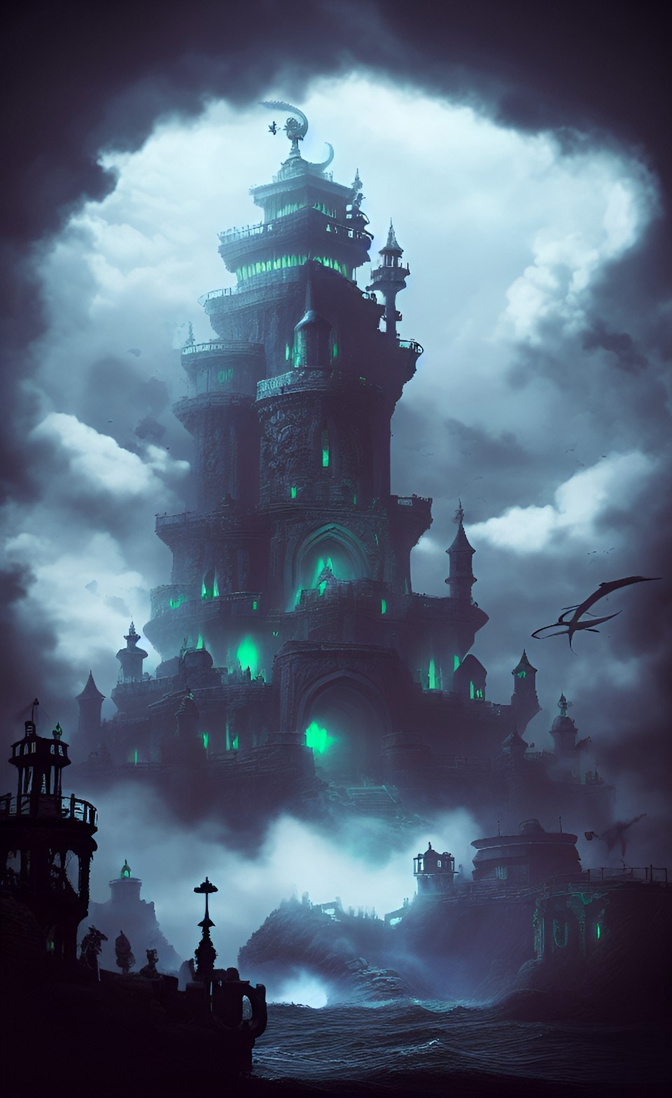 По описанию должно было получиться совсем другое изображение, не то, что на картинке. Вот такие выкрутасы нейросети. Но замок прикольный, атмосферный.