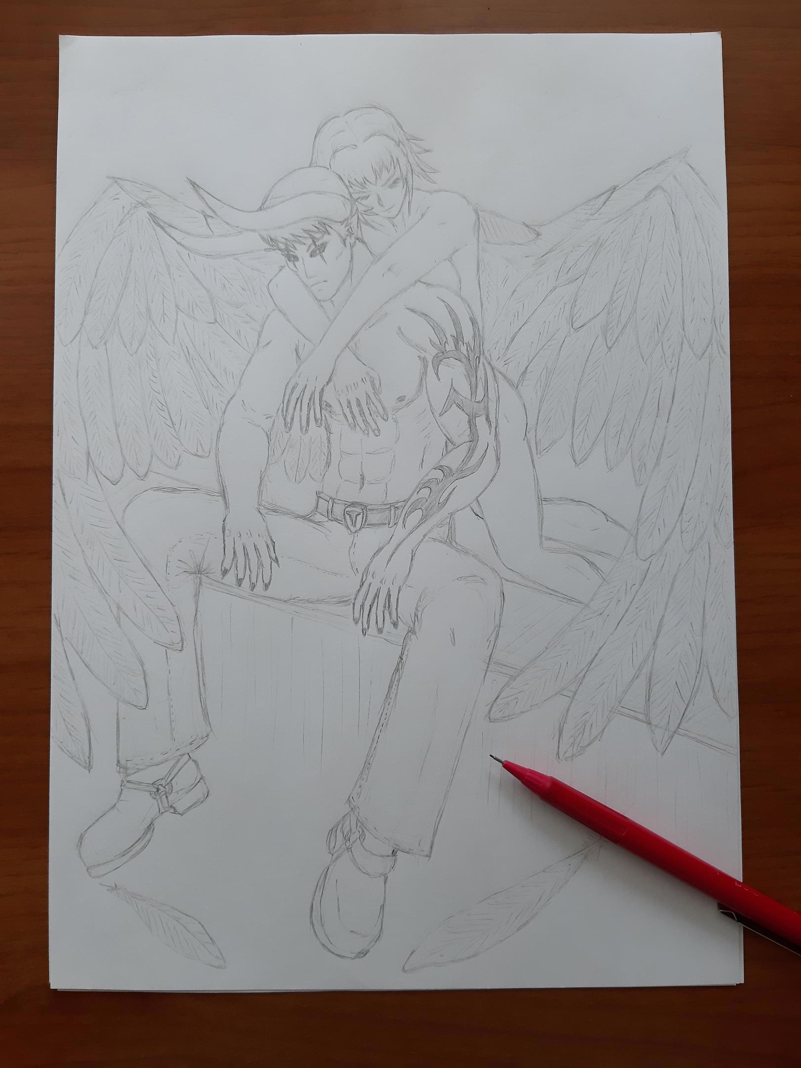 Дикий огонь Города Ангелов Автор: Demon Sanya Иллюстрация к рассказу "Дикий огонь Города Ангелов".Персонажи: Александр и Кристина.Карандаш.Июнь 2020.Цветная версия... Этапы отрисовки... персонажи, фэнтези, demon sanya universe, ангел, любовь, грусть, демон, закат, иллюстрация 269 Пожаловаться