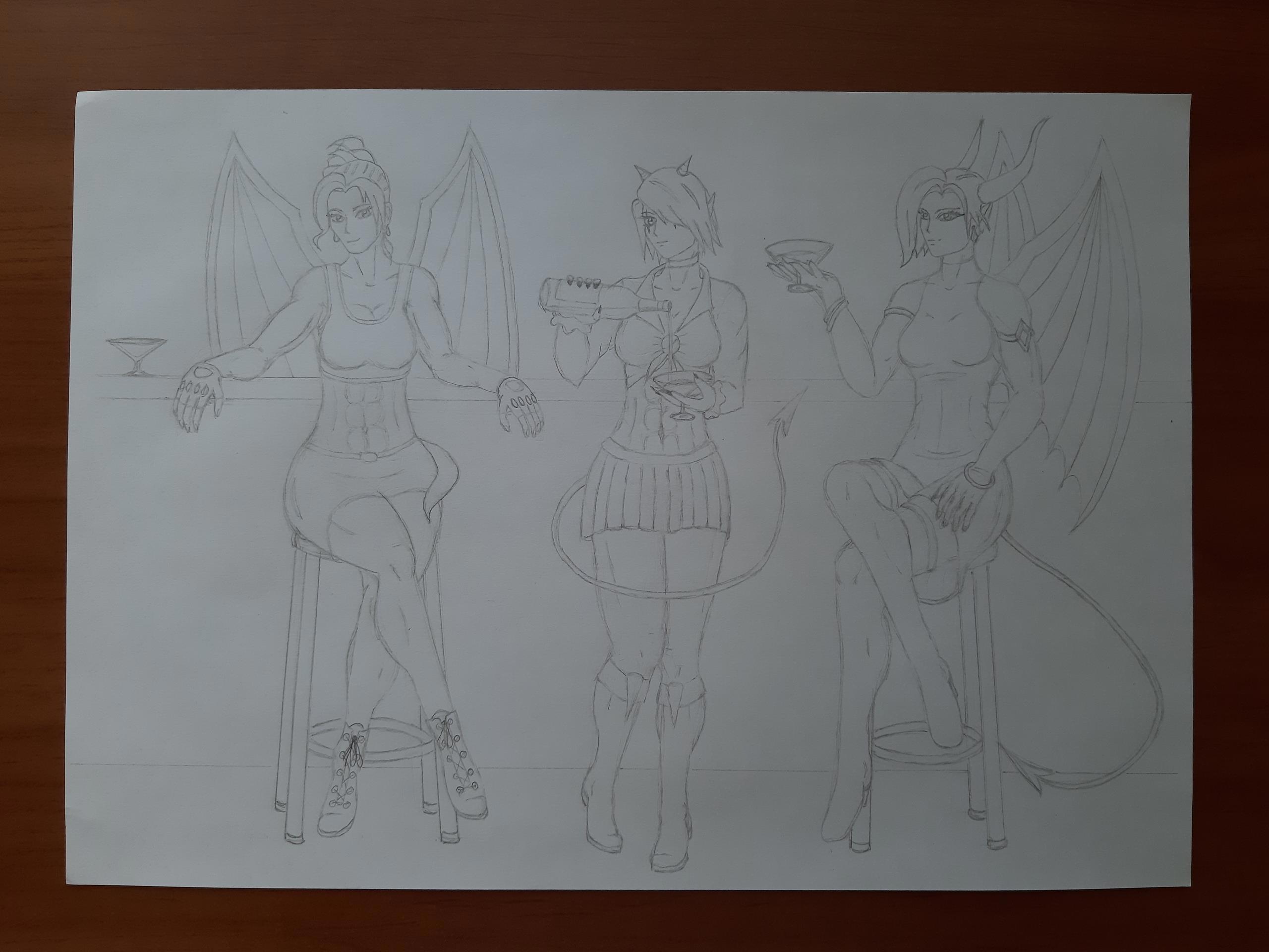Девичник Автор: Demon Sanya Иллюстрация к рассказу "Девичник".Персонажи: Джессика, Лекса и Лили.Карандаш.Июнь 2020.Скетч...Цветная версия... Этапы отрисовки... персонажи, фэнтези, demon sanya universe, бар, дракон, девичник, девушки, демон, иллюстрация 216 Пожаловаться