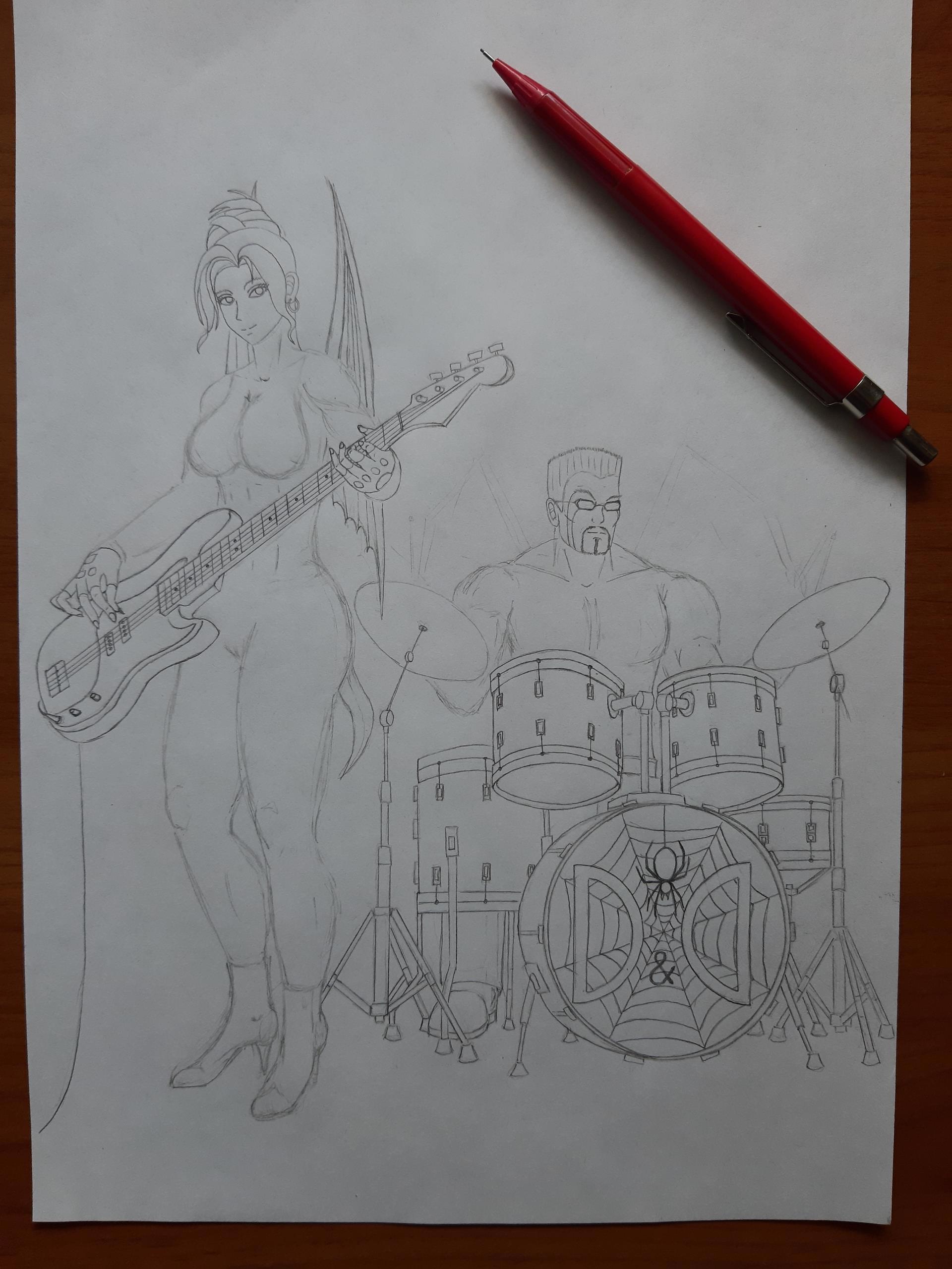 Let's Rock (Джессика и Серик) Автор: Demon Sanya Персонажи: Джессика и Серик.Карандаш.Июнь 2022.Цветная версия... Этапы отрисовки... персонажи, demon sanya universe, гитара, концерт, море, музыка, барабан, дракон, закат 328 Пожаловаться