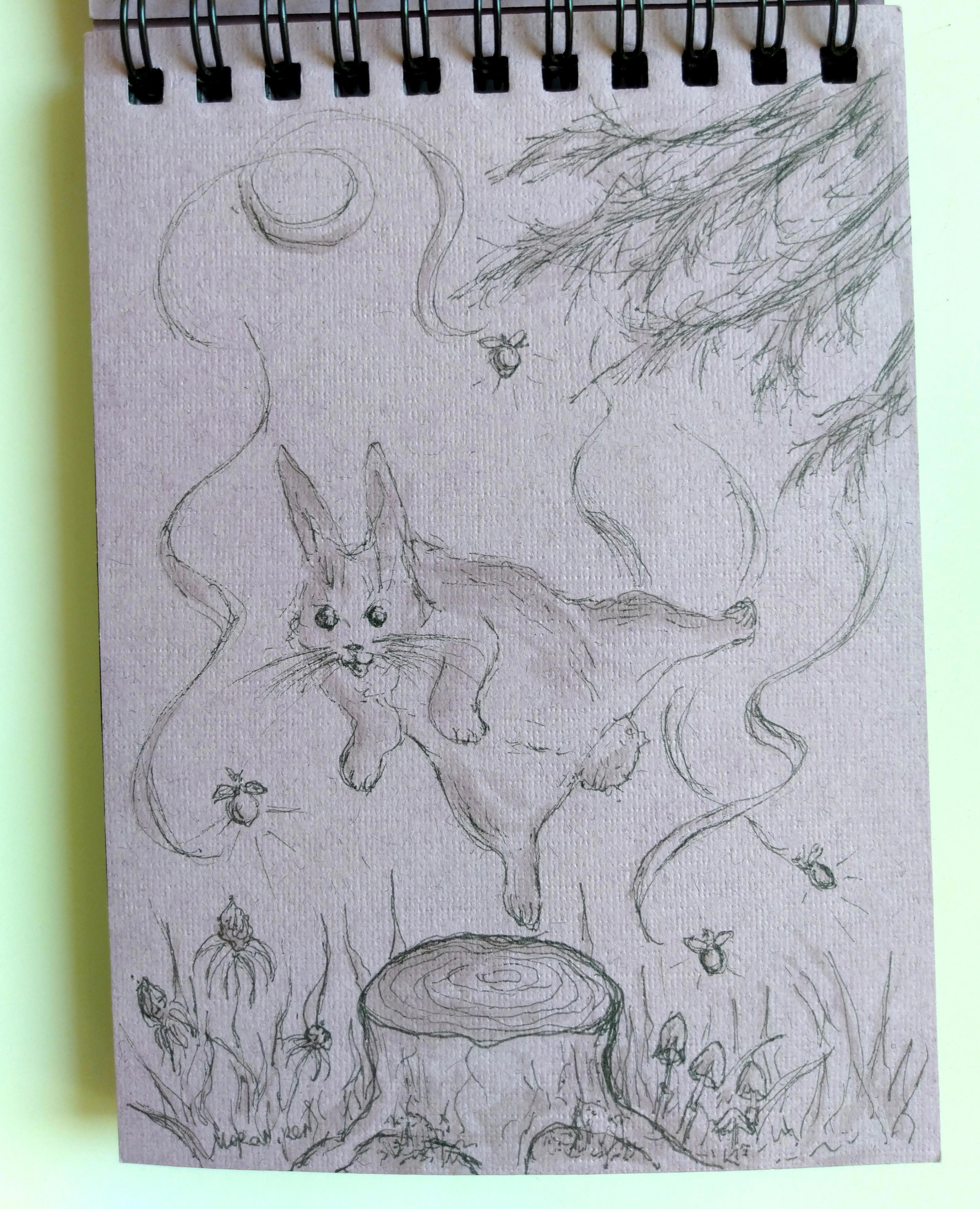 Зайчишку (у него кость широкая! кость! и мех пушистый!) нарисовала с месяц назад, но подкрасить и оцифровать руки дошли только сегодня, когда выдалась свободная минутка при наличии кошки на коленках и отсутствии неотложных дел.