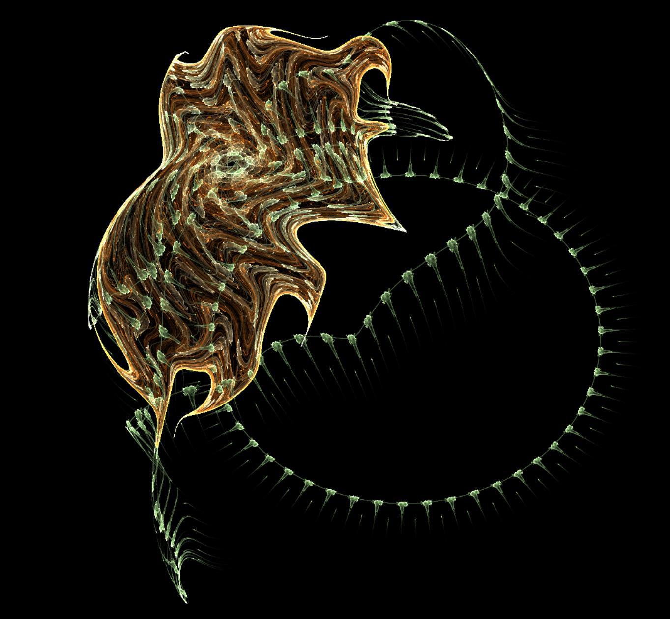 Эта штука напоминает мне росянку и прочую компанию хищных растений. Все сегодняшние фракталы объединяет тонкая ажурная фактура, от которой трудно было оторваться.