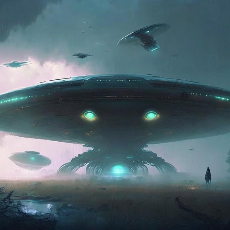 Один из инопланетных кораблей. Автор: Васильев Павел Алексеевич Кто они, представители внеземных цивилизаций? (Создано нейросетью.) внеземные цивилизации, книжная иллюстрация, нло 225 Пожаловаться