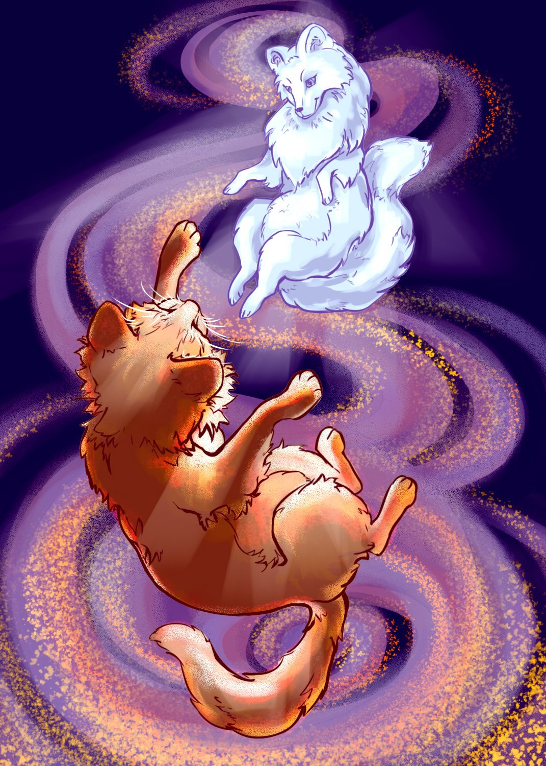 Иллюстрация была готова в лайне ещё в мае, и тогда в моей голове то божество оформилось в арктическую лисицу, ту, которая "пушистый северный зверёк". Ну Фидель же всё, потратил все жизни и к нему пришёл... )) А потом Марика Становой выложила свой арт, и там ласка. И да, по задумке автора - это ласка. А у меня в иллюстрации будет полярная лисица!