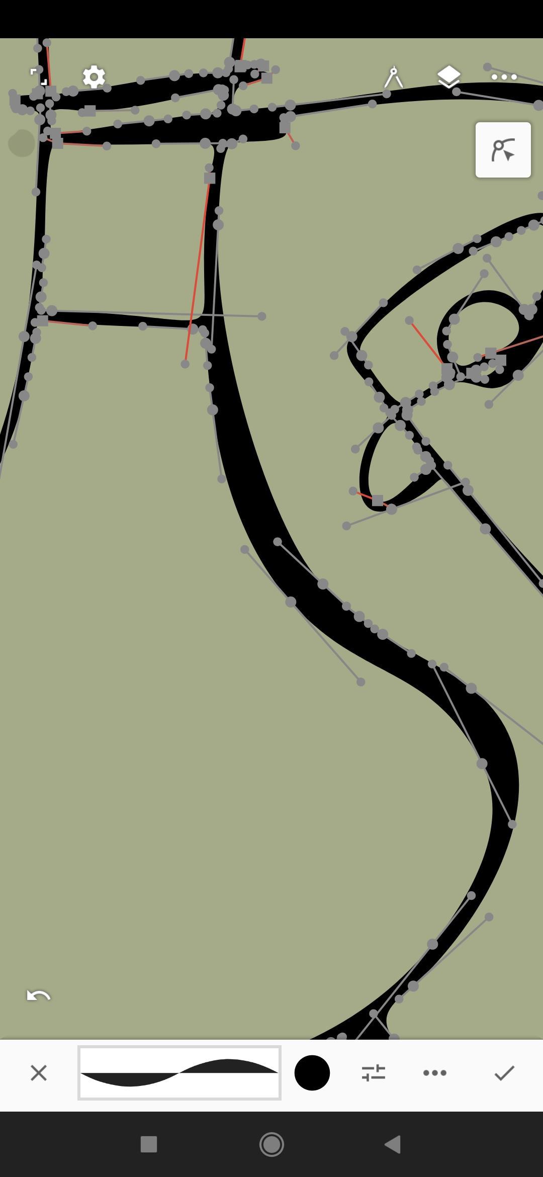Как вы видите линия неровная - но это ничего. Её можно в любое время потянуть за узлы и поправить.