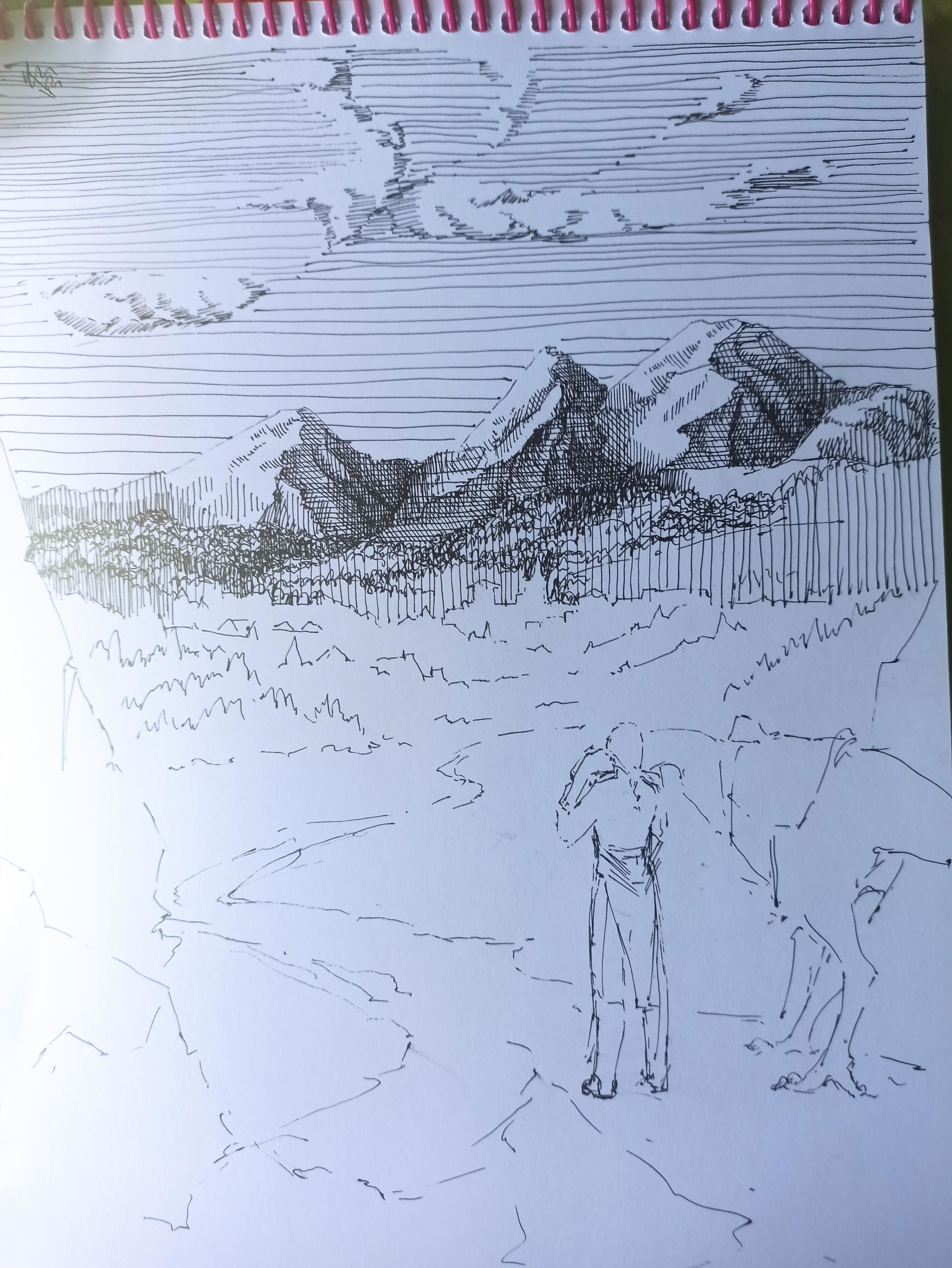 Я в деревне, компа нет, зато есть черная ручка и бумага. Делалось всё сразу начисто, так как карандаш я взять не догадалась, потому есть косяки.