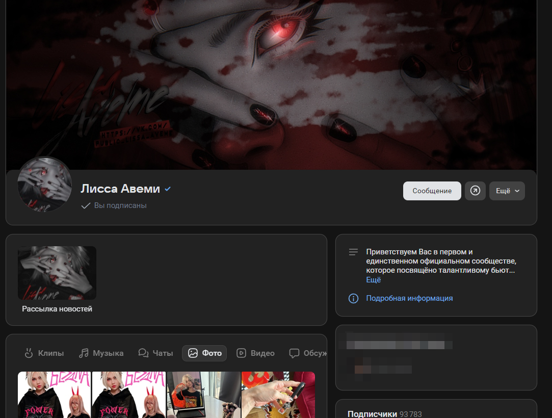 Заказ на оформление в официальный паблик вк Лиссы Авеми. Так же были сделаны обложки для альбомы и шапка для группы, в посте только ава.