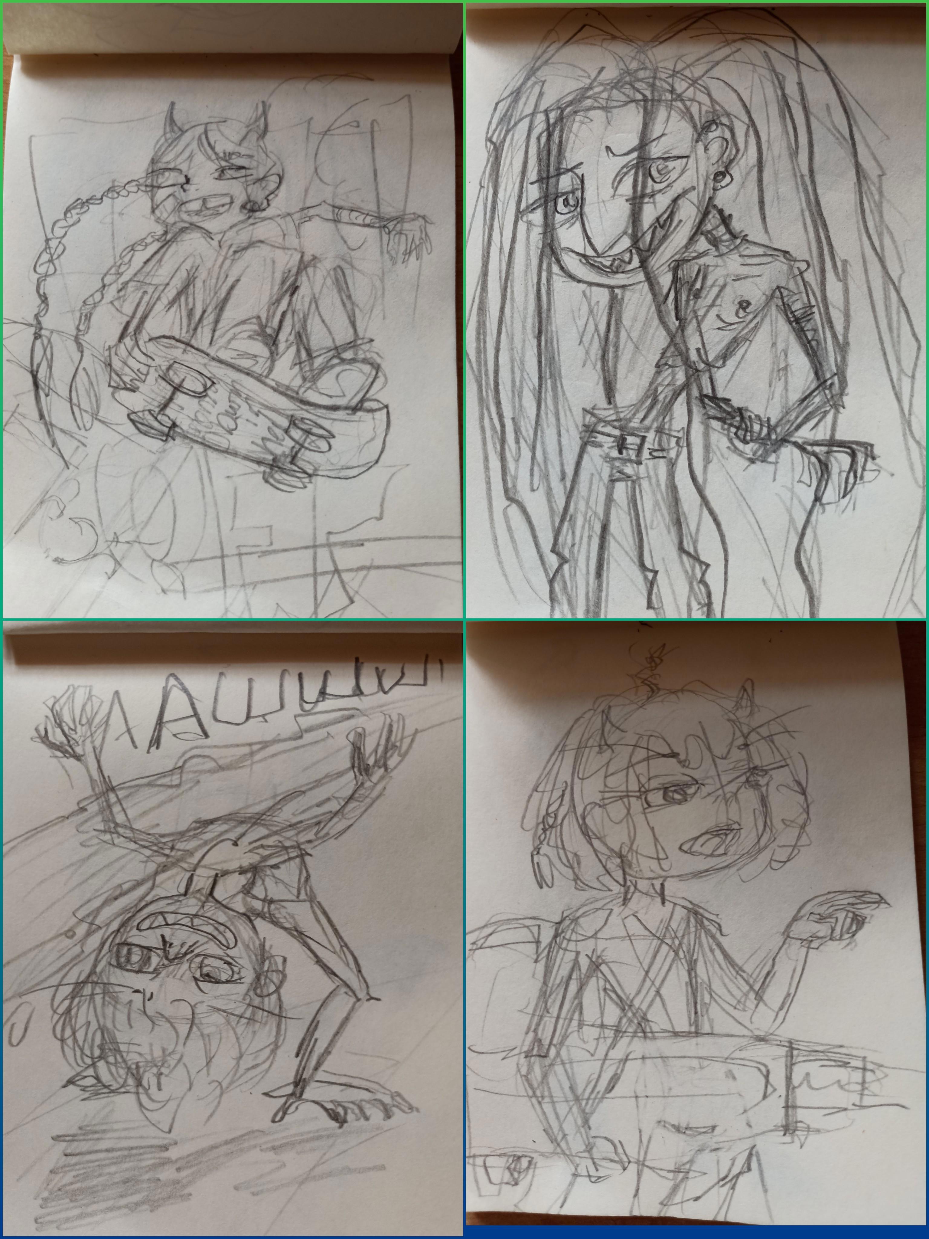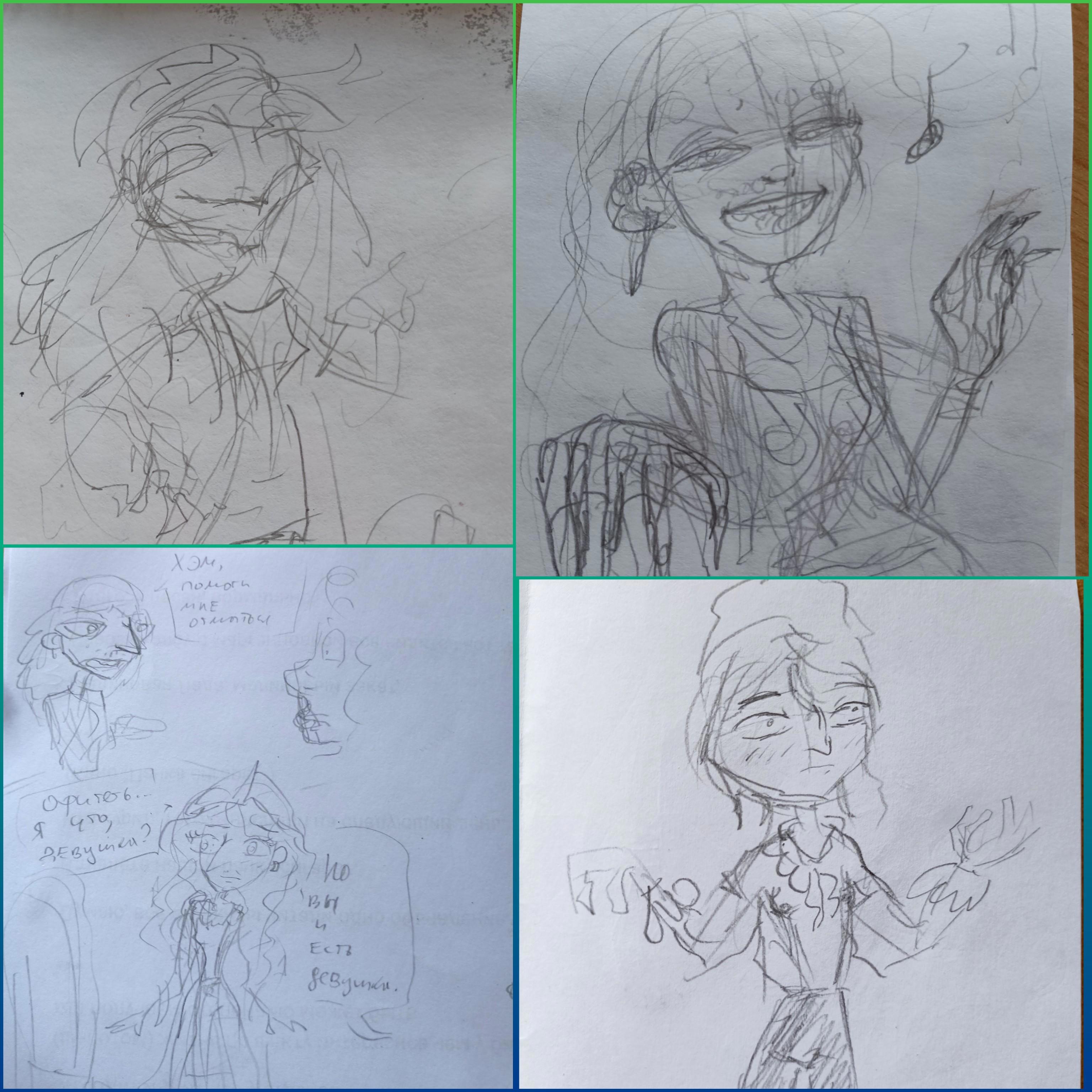 Поэтому на самом деле у меня есть прикольные скетчи, но поскольку я очень сосредоточена на результате, чаще всего они исчезают, не будучи превращёнными во что-то прикольное. Хотя иные скетчи у меня круче полноценных работ, но потом я начинаю разборки, и они пропадают.