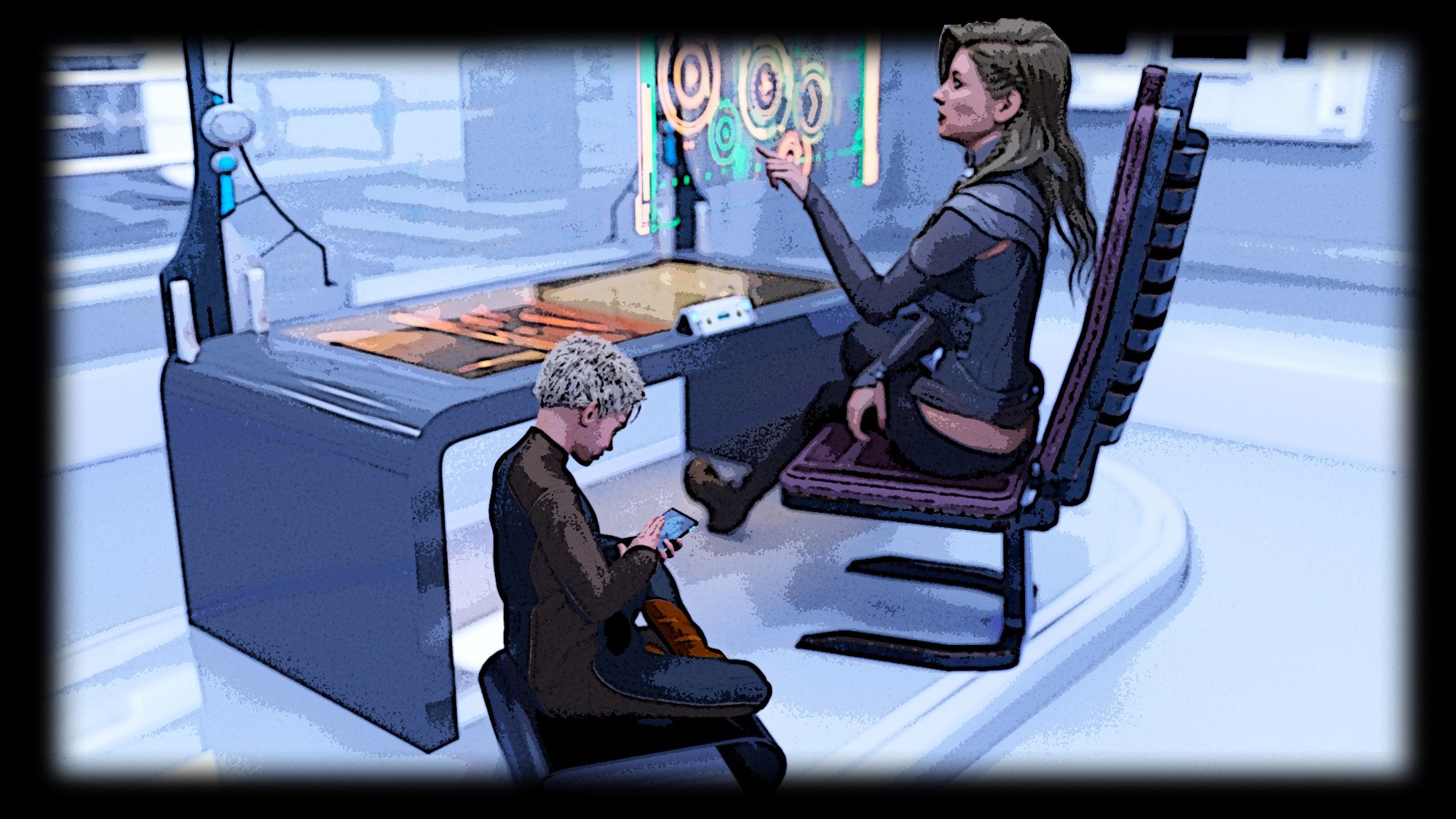 – Мама, а правда, что Родин побеждал зелоидов одним лишь взглядом? – спросил я, переводя взгляд с планшета с комиксами на маму, которая что-то делала за компьютером, виляя пальцами перед голограммой, находясь в своём светлом кабинете.