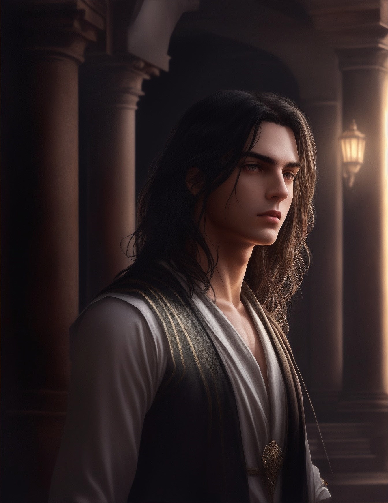 Один из героев, впервые появившийся в романе «Ведающая Водой», но таким он предстает в «Танце Воды». Да и зовут его там уже не Айне. Создано мной в Leonardo.Ai