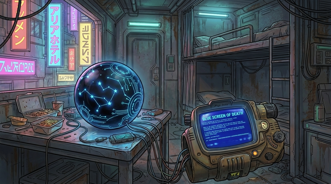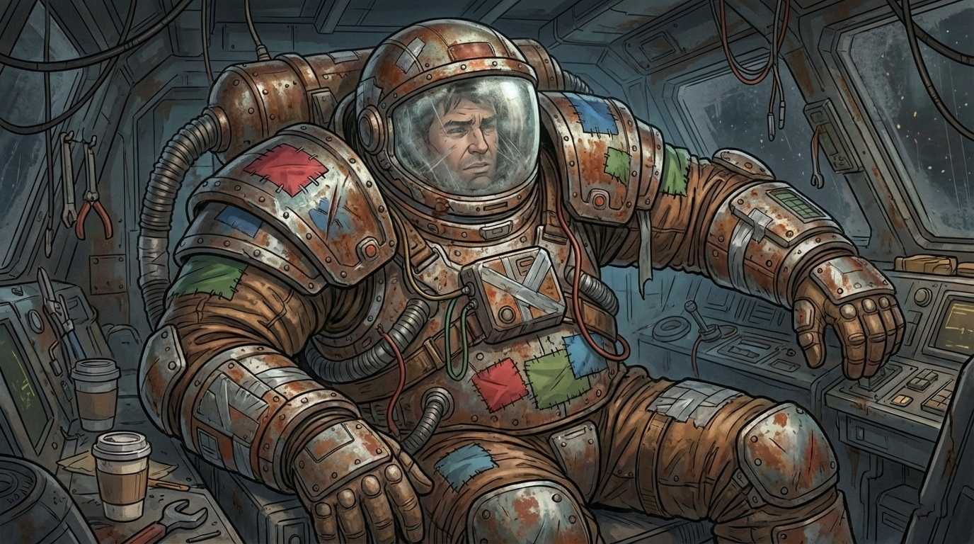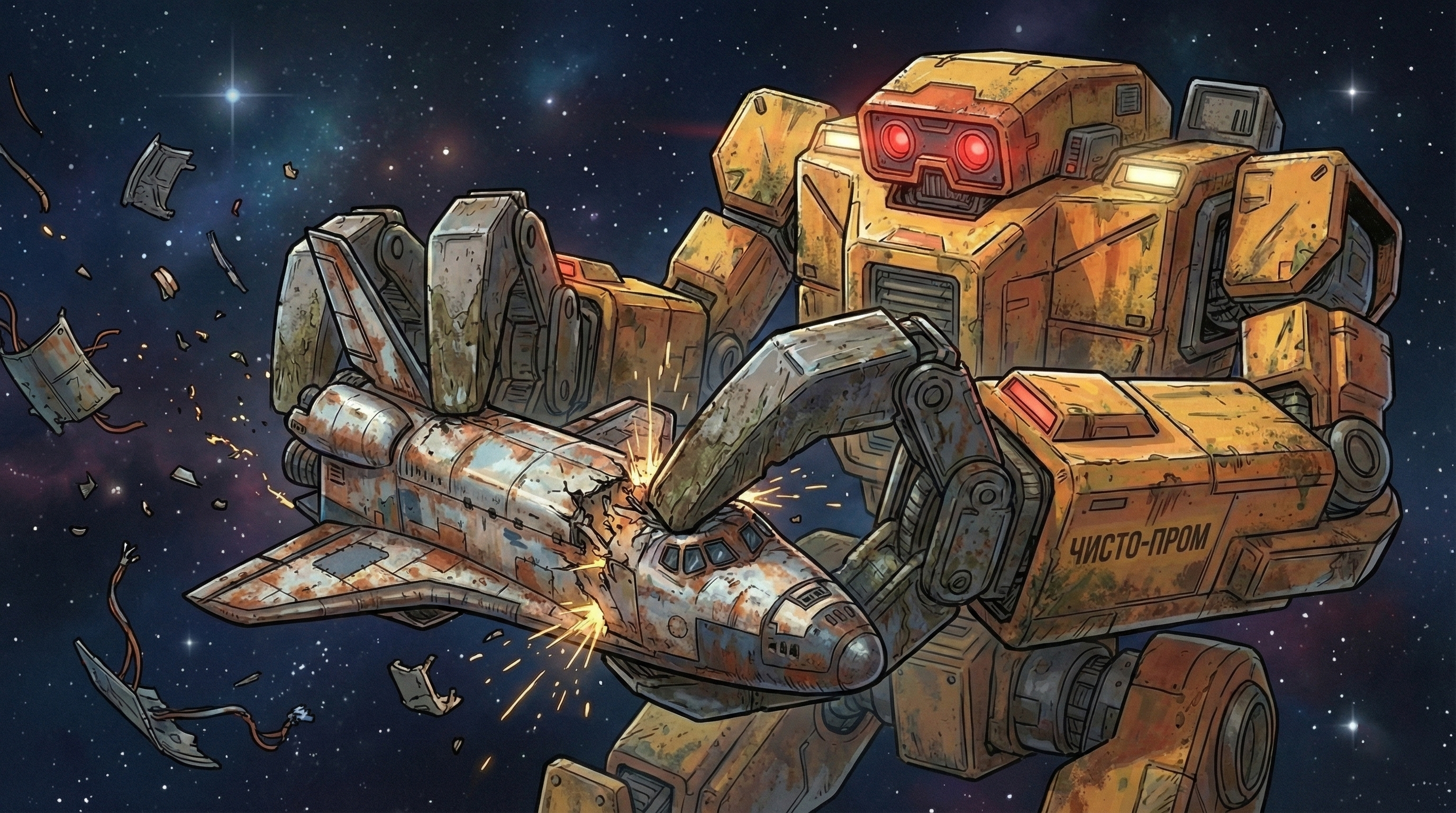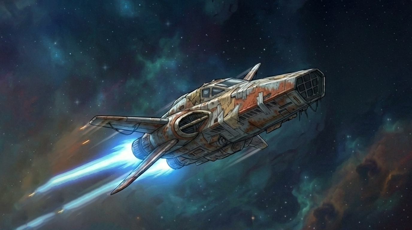 Я — космический мусорщик. Мой корабль держится на честном слове и синей изоленте, а банковский счет стремится к абсолютному нулю. Все, о чем я мечтал — найти тот самый «золотой лот», который вытащит меня из грязи.
