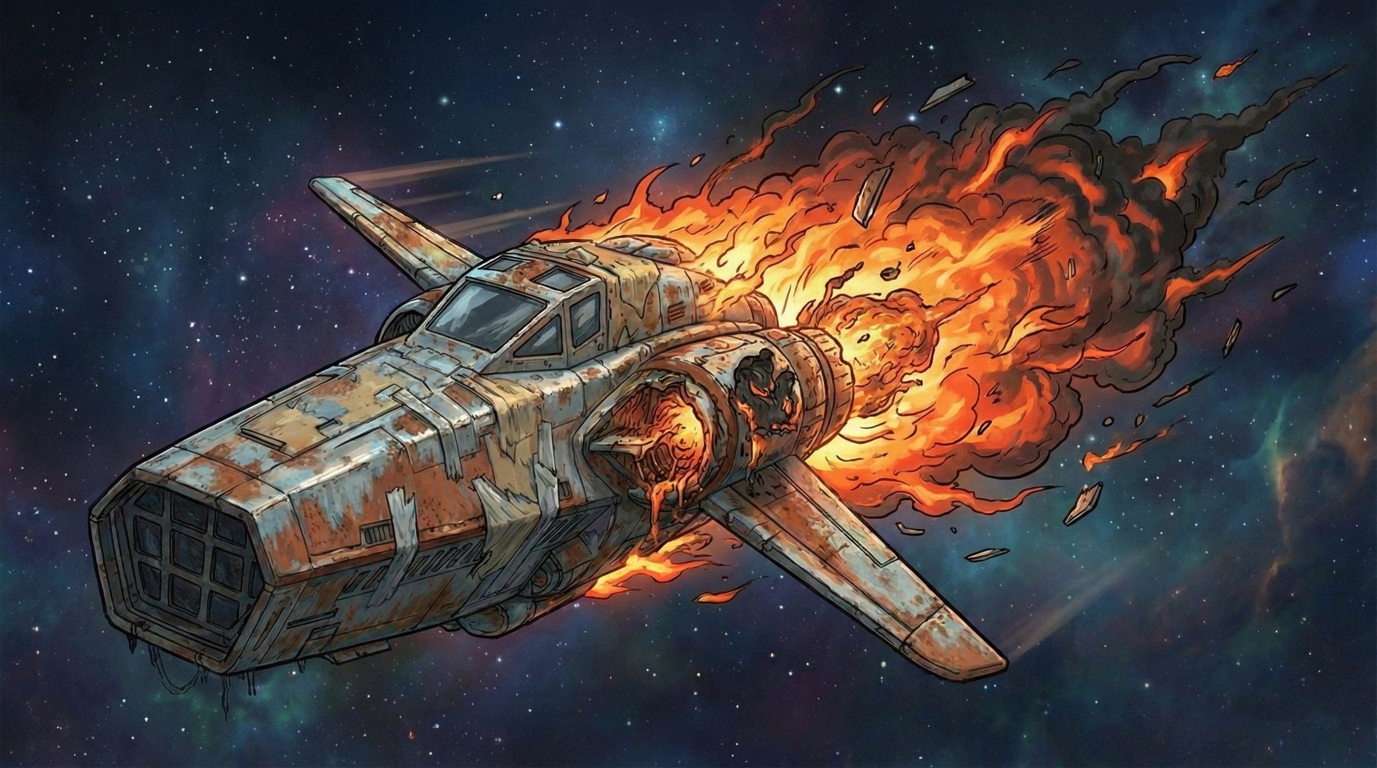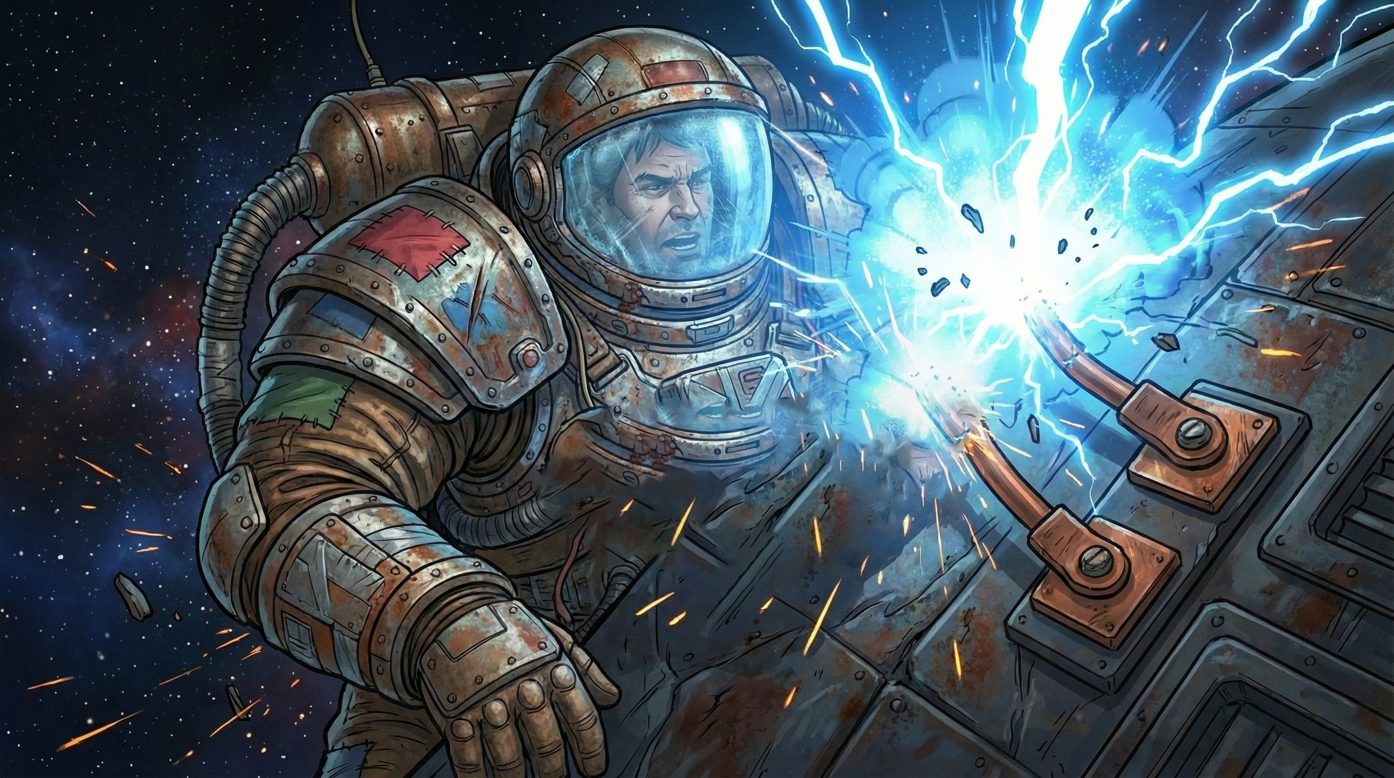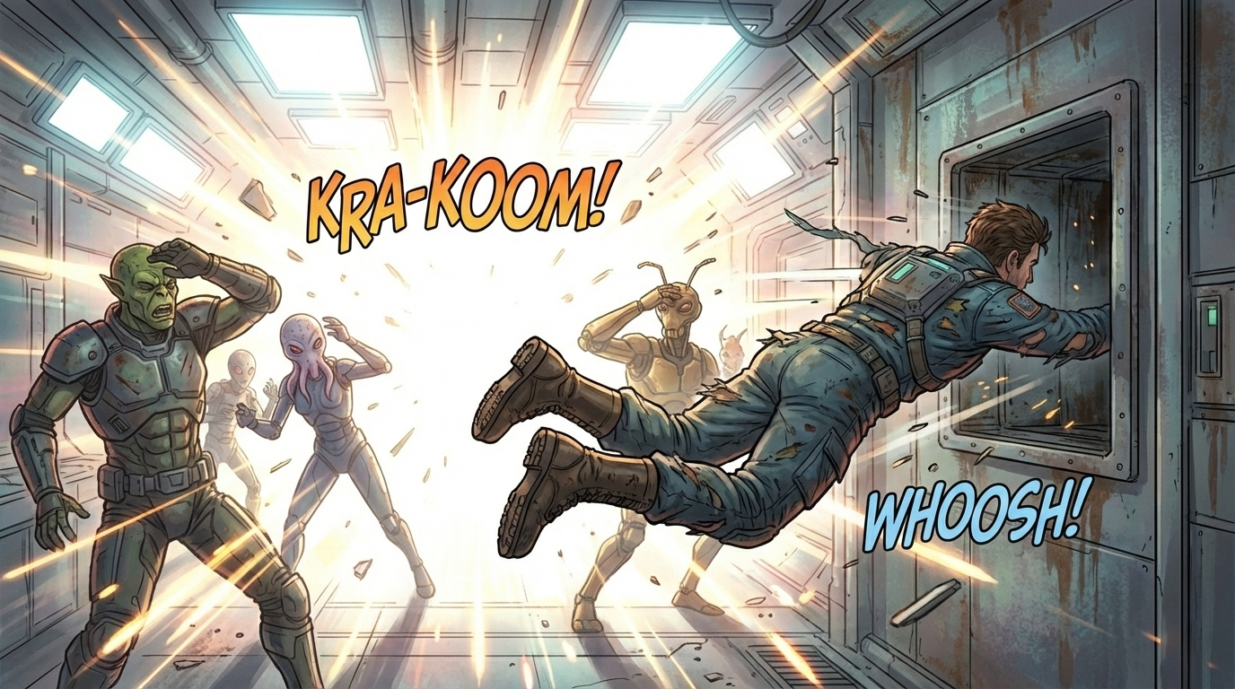 Я — космический мусорщик. Мой корабль держится на честном слове и синей изоленте, а банковский счет стремится к абсолютному нулю. Все, о чем я мечтал — найти тот самый «золотой лот», который вытащит меня из грязи.