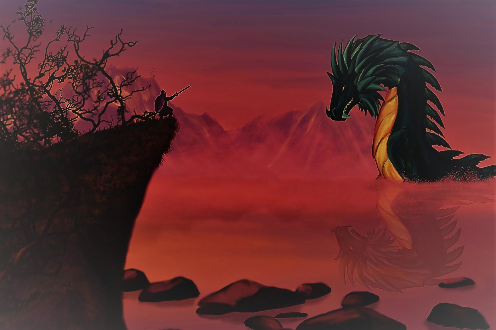 Ярко-красное пламя охватило змея, прожигая и обдирая чешую.