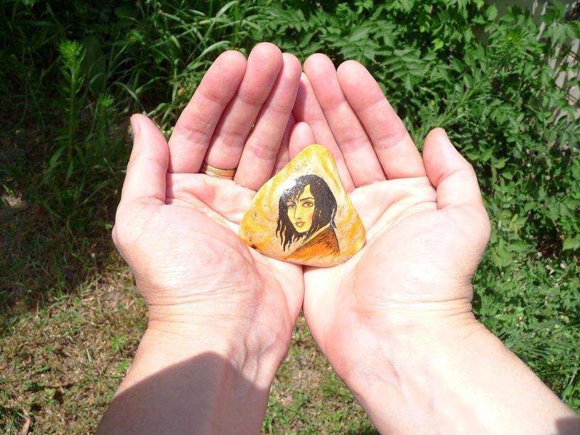 Вторая новость - вчера я встречалась вживую с нашей АТ-шной коллегой, Мари Пяткиной, которая возвращалась через мой город с отдыха на море. И Мари подарила мне расписанный ей камушек, с моей аватаркой!