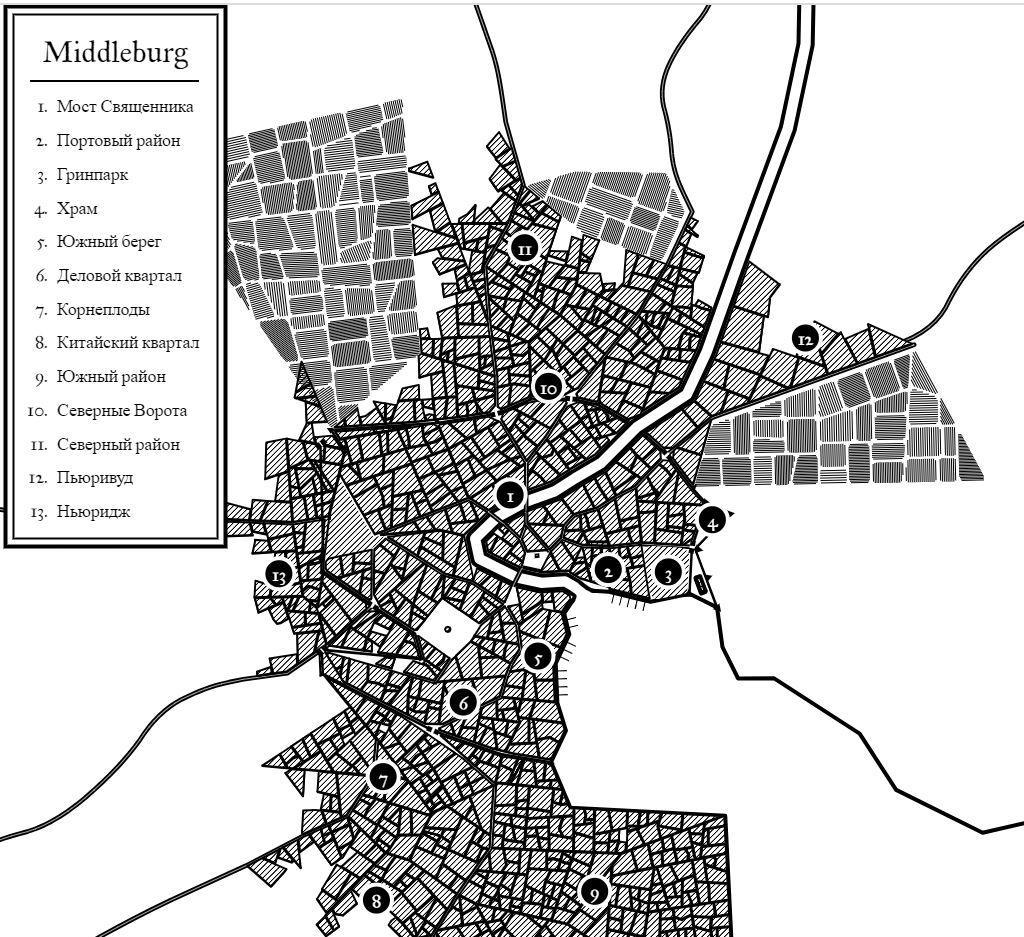Главный герой Игорь уже побывал в центральном мире, Миддлбурге, напоминающим комиксовый Нью-Йорк: