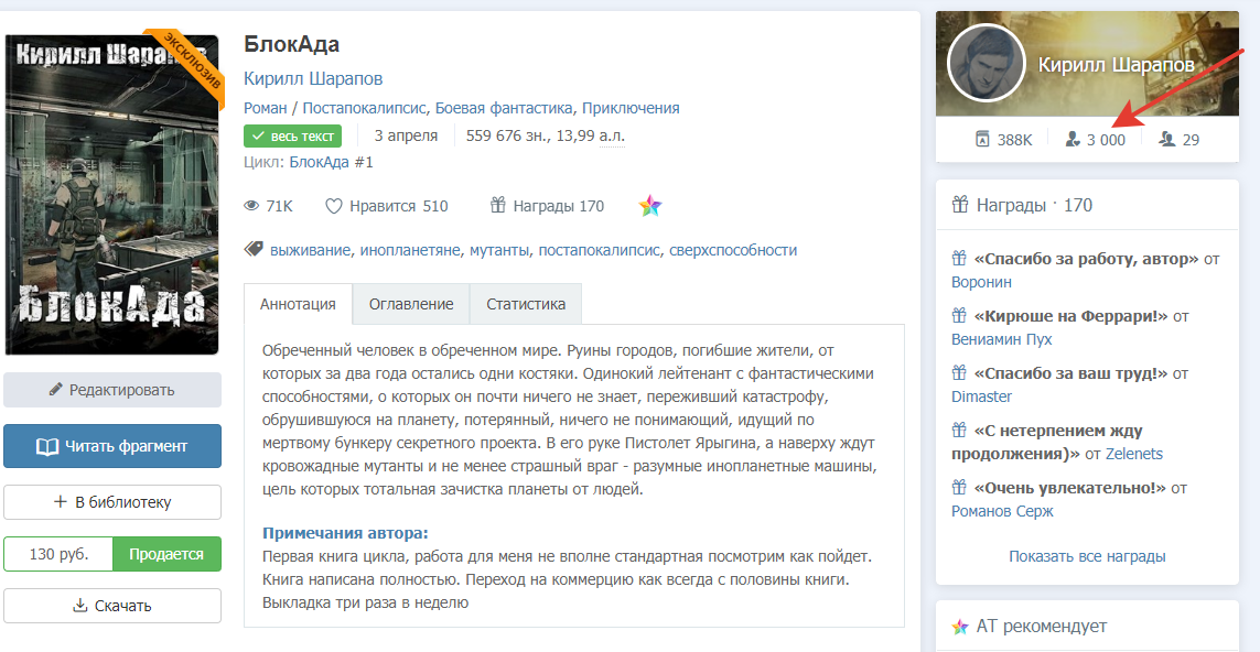Автор: Кирилл ШараповДождался, последнее время активности от меня почти не было, в рекламу тоже не вкладывался, поэтому тянулась последняя сотня наверное с месяц. Но я все же заскринил результат. Это не просто число, это люди которые меня читают или читали, не важно. Важно что вы есть, и я могу сказать вам спасибо.