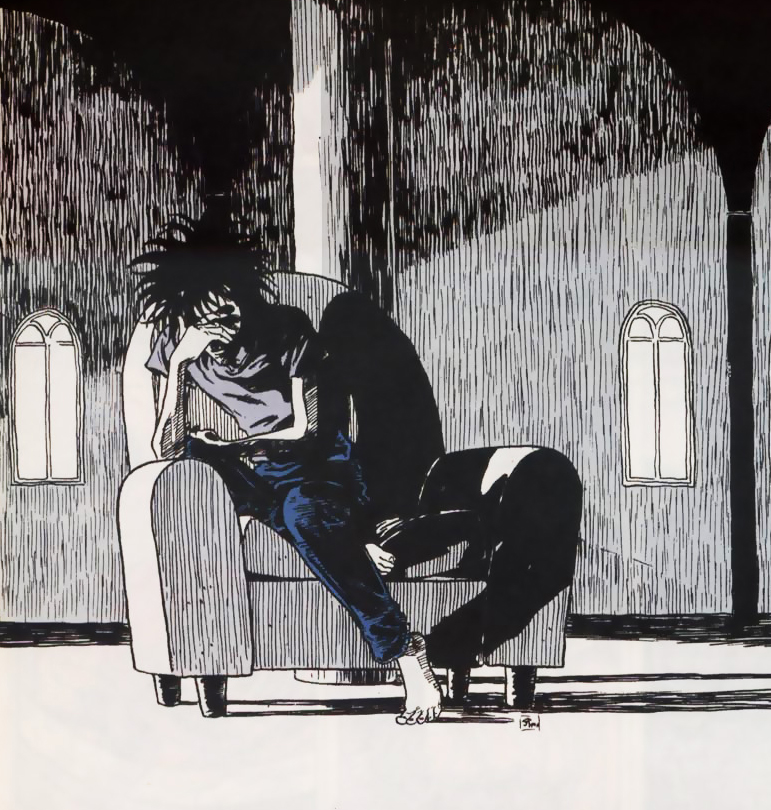 Нынешний Морфей в романтических отношениях трогательно и восхитительно беспомощен. Несмотря на его обходительность, несмотря на то, сколь многое он может предложить - и предлагает - возлюбленной, у него по-прежнему есть ОБЯЗАННОСТИ, и он по-прежнему имеет огромные проблемы с бытовой коммуникацией. Поэтому пара недель вместе, затем "она... она сказала, что не любит... она ушла от меня" - и страдать-страдать неделями, заливая серым ливнем всё царство снов.