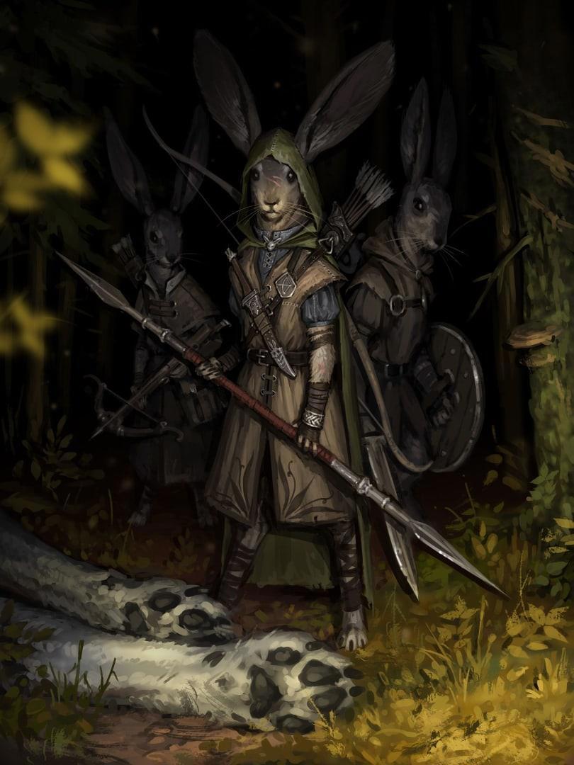 Автор: ПантельУшастый конкистадор – это крупные зайцы, по пояс взрослому человеку. Вооружены мечом и щитом или копьём, иногда носили луки и кочаны стрел за спиной. Одеты в лёгкую броню с закреплённым отравлением кинжалом на груди.