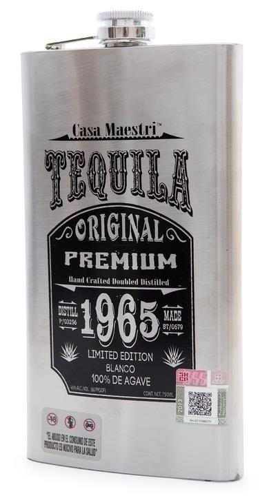 Casa Maestri Tequila Original Premium Blanco 1965 Limited Edition. 100 % спиртов голубой агавы, 40% алк., проходит двойную дистилляцию, в бочках не выдерживается. Разливается в металлические фирменные фляги «Original Premium 1965 Limited Edition» разной емкости (лично нам попадались 0,75 и 1,75 л). Прозрачная и бесцветная, как родниковая вода. Обладает тонким и нежным ароматом голубой агавы без каких-либо дополнительных оттенков. Вкус очень мягкий и деликатный – причем это практически чистый, чуть «маслянистый» вкус голубой агавы, без каких-либо дополнительных тонов, как и в случае аромата. Послевкусие долгое, теплое и умиротворяющее. Весьма достойная текила. Вполне подходит как для первого знакомства с текилой, как напитком, так и для дружеского застолья, и для дегустации.