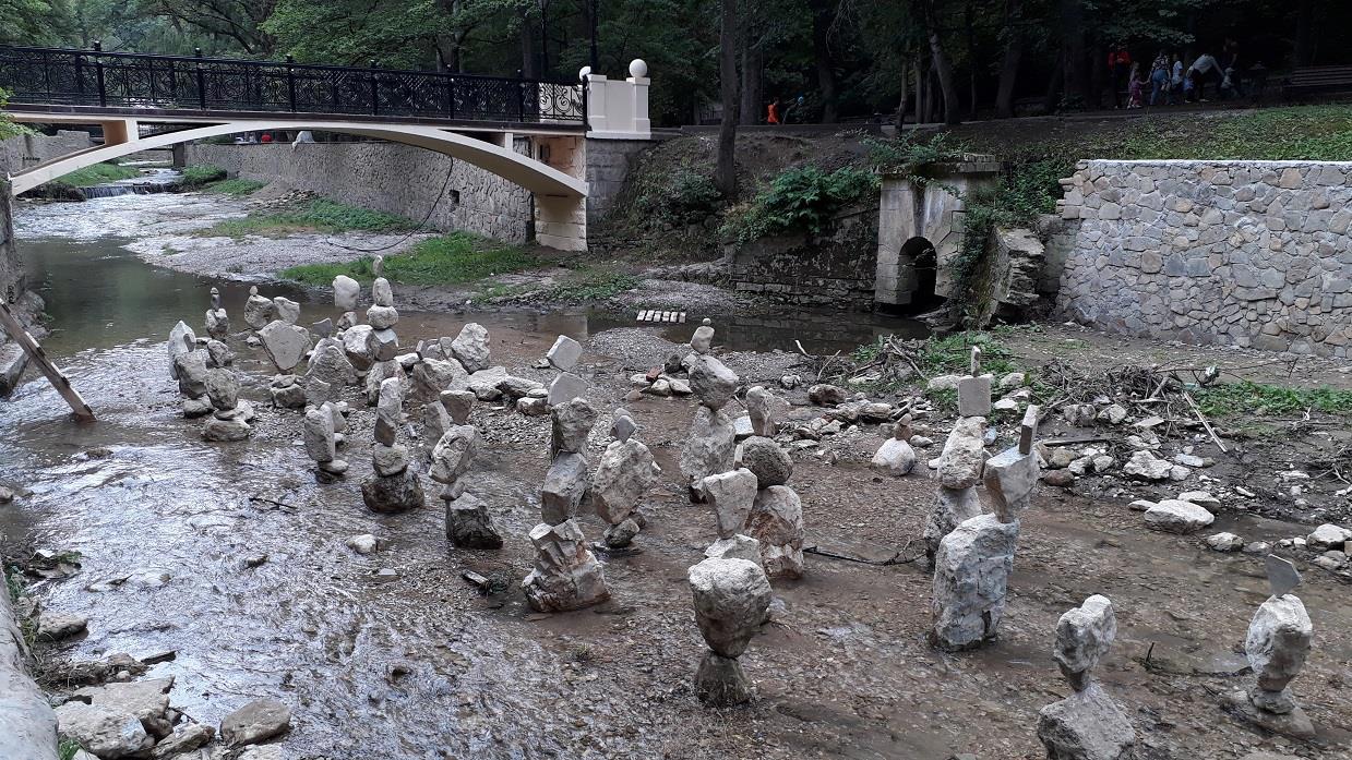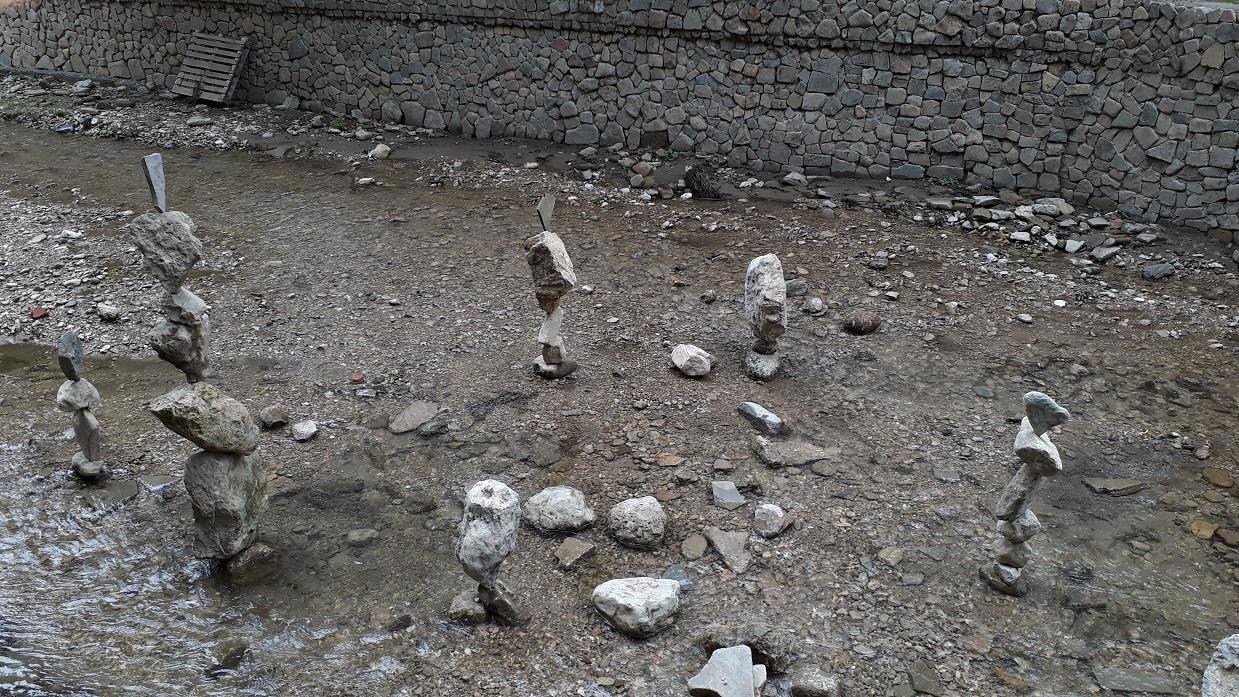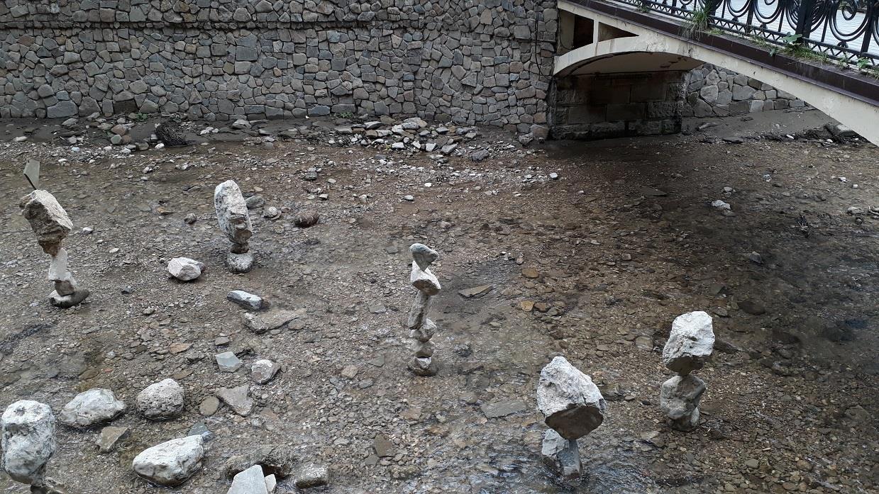 Всё проходит - спадает и вода. О том какие силы властвовали в мутном потоке можно судить по обнажившемуся руслу. Это какой же нужно иметь интеллект и силу что бы крутя камни случайным образом раз за разом расставлять их в виде таких хрупко балансирующих фигур.