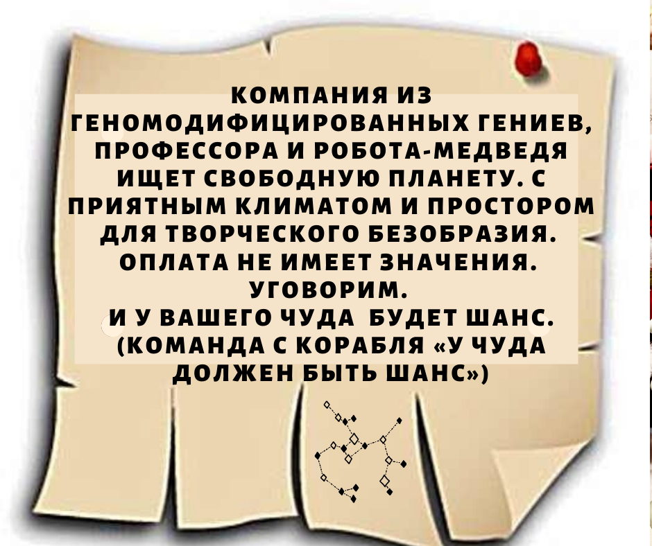 — И?.. Я-то тут причём? Делаешь личико попечальнее и - вперёд! Что может быть скучнее доски объявлений? Сами мы не местные…(с)
