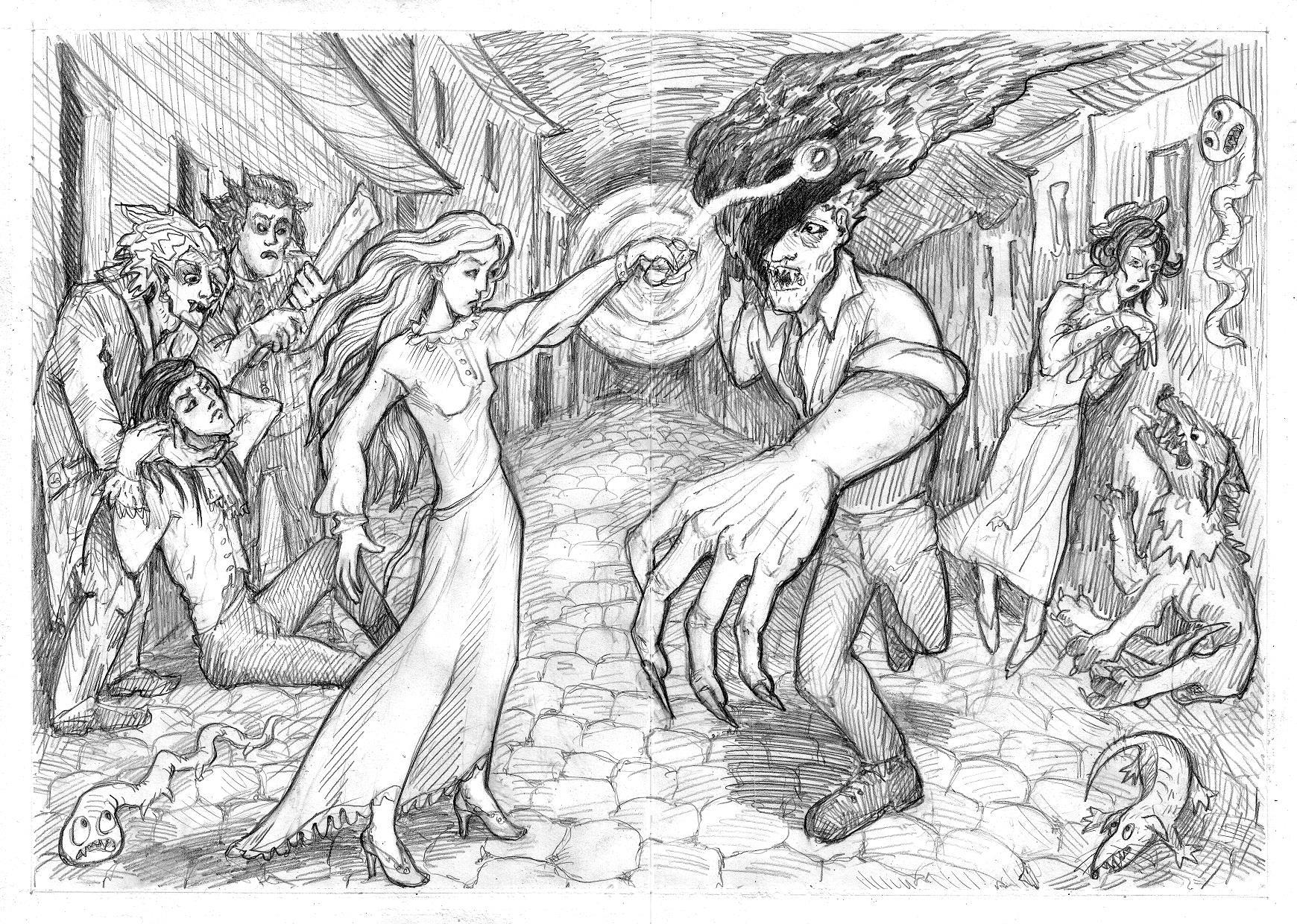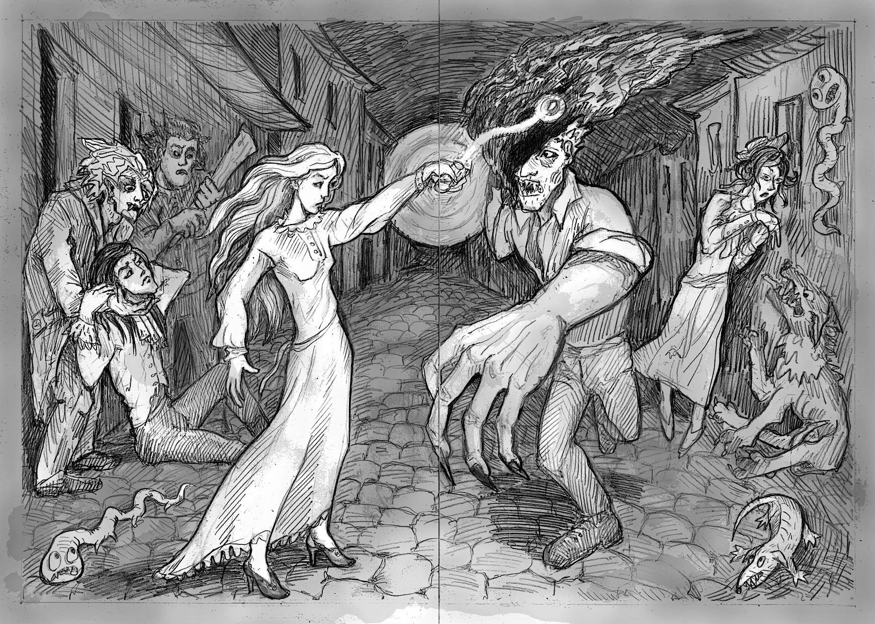 П.С. после некоторых размышлений линию посредине решила не убирать. Не, ну я могу, конечно, но а) лень, и б) так оно похоже на настоящую большую иллюстрацию с разворота книги.