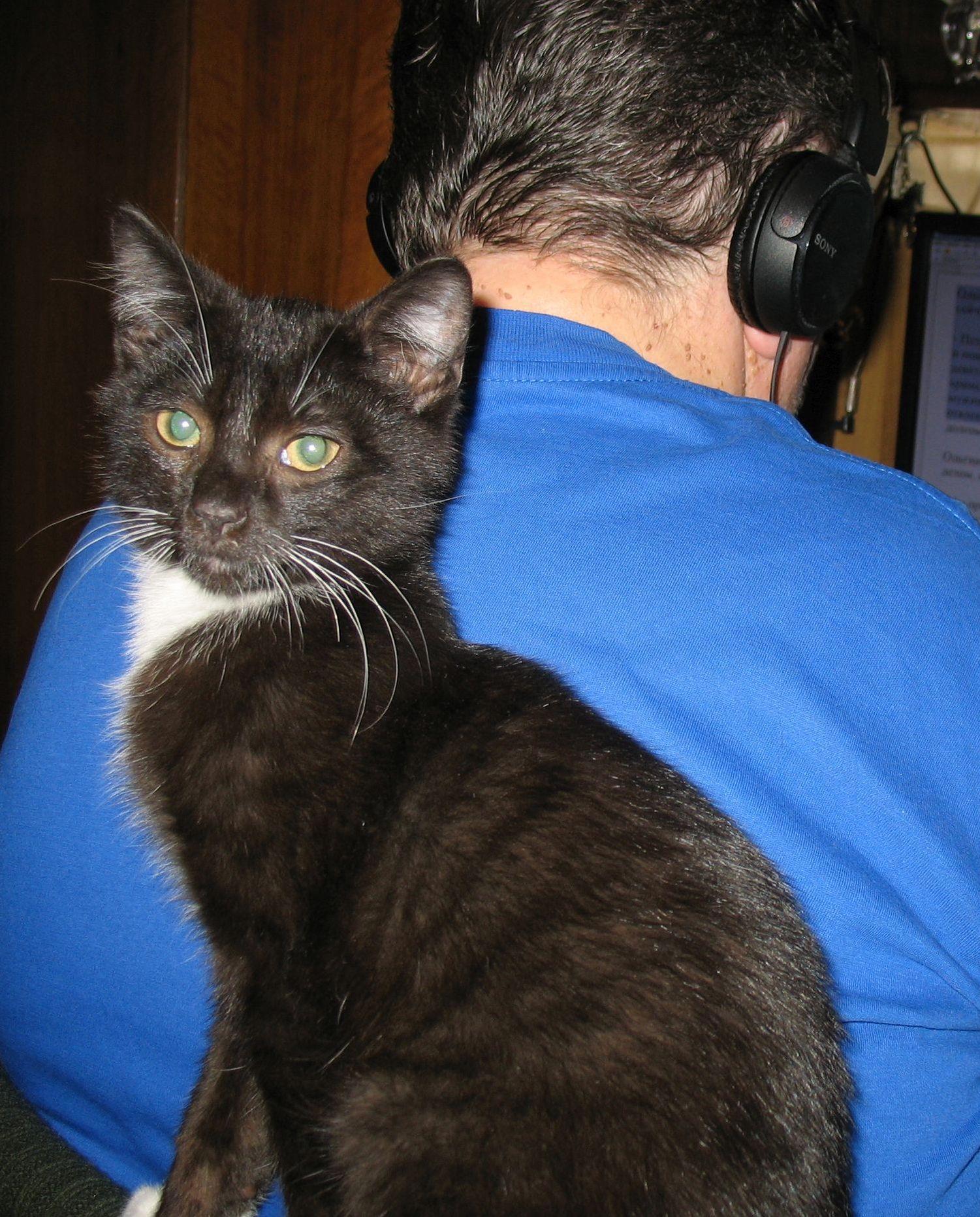 А сейчас вымахал в огромного, наглого котяру))) Но всё равно жутко обижается, когда уходим, всегда бежит встречать и если не спит - всегда рядом.