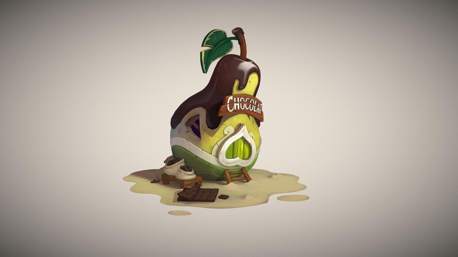 Автор: Романчик А.В.Для своей первой работы в 3d моделировании был выбран художник Charlène Le Scanff (AKA Catell-Ruz). Один из его замечательных фруктовых домиков.