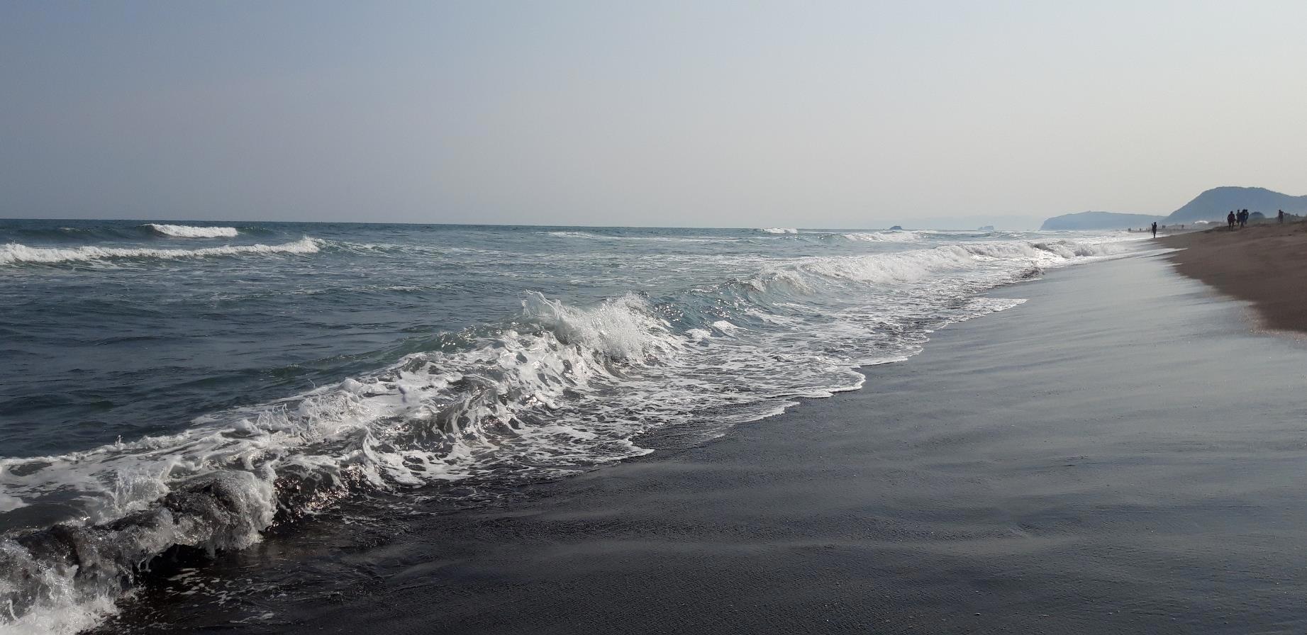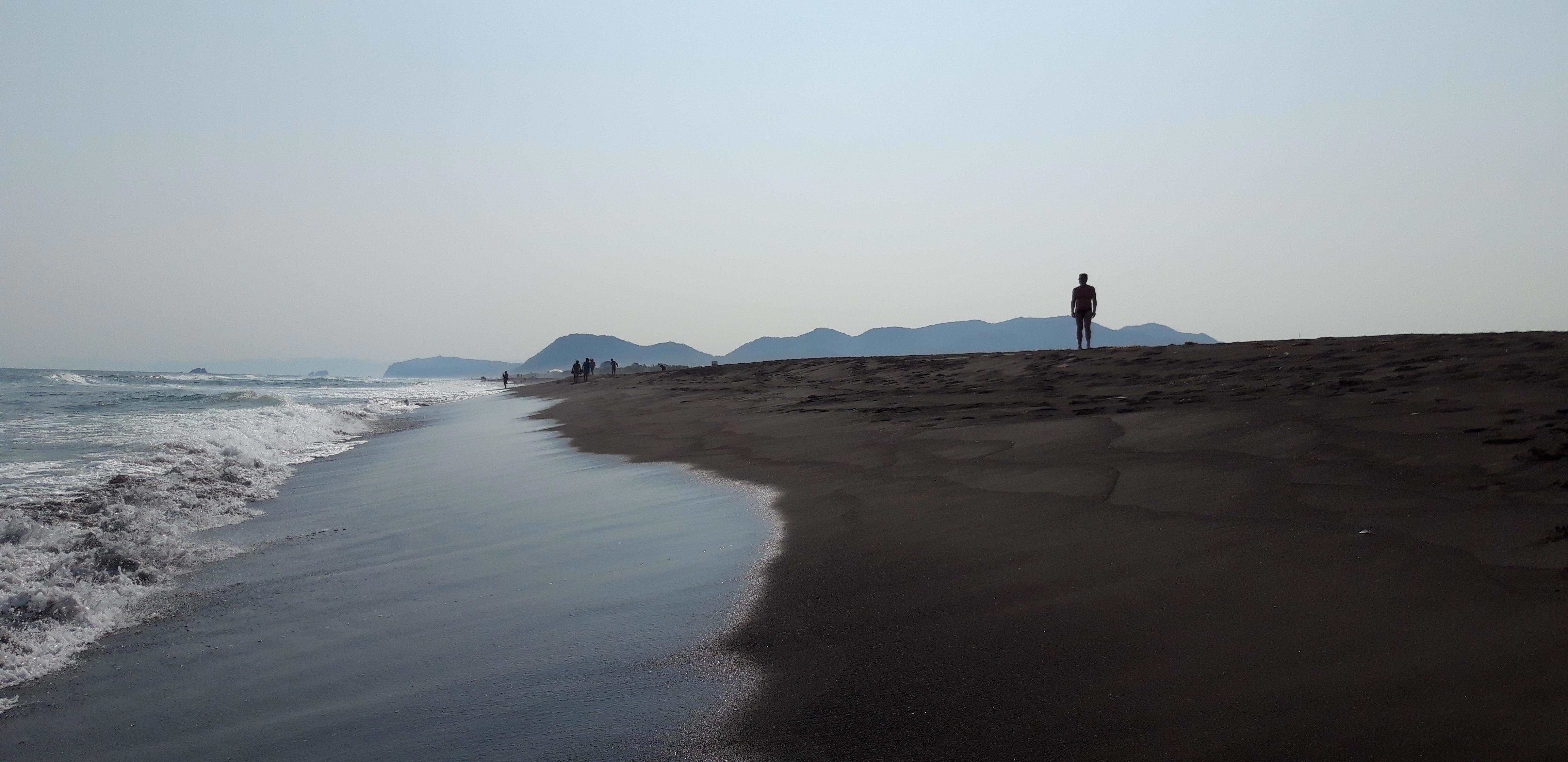 Но если уж собрались ехать, то поездка будет не долгой, от дома километров 20, полчаса, и мы уже там. Песок черный, древний вулканический, его здесь добывают для нужд города, посыпают зимой дороги, видок у города неприглядный от этого, грязный.