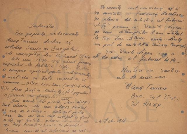 Учитывая отношения к евреям, которые царили в Румынии, Рихард справедливо опасался публично ставить свою фамилию, на партитуре своей новой песни, которую он написал специально для бесподобной румынской певицы Марие Тэнасе, популярной исполнительнице народных песен, в которую он, вероятно, был без ума влюблен, как и все мужчины, которые ее тогда окружали.