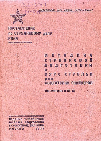 Так или иначе, но про этот вопрос в СССР не забывали, в отличии от других стран. Первым результатом серьёзной работы можно считать разработку в недрах РККА в 1933 году наставления под названием «Методика стрелковой подготовки и курс стрельб для подготовки снайперов». В этом документе перечислялись основные цели снайпера. Это были: командный состав, органы наблюдения и связи, подавление огневых средств противника, ослепление бронированных машин противника (!) и борьба со снижающимися самолетами противника (!). «Технические требования», предъявляемые к снайперу были весьма высокими. От него требовали вести «…огонь по наземным целям из винтовок с открытым прицелом до 1000 метров, с оптическим – до 1500 метров». Цель типа «ручной пулемёт», например, должна была поражаться с расстояния 800 метров не более чем с двух выстрелов! Понятно, что для таких результатов нужны и настоящие профессионалы, и соответствующее оружие.
