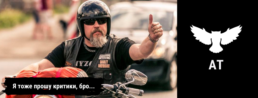 P.S. Для тех, кто в танке и каске. Я не против критики. Я за выбор – критика от коллег, о которой просили. Это означает – уважение к мнению и выбору того, кого критикуют. Это означает – учитывать чужое мнение, считаться с ним.