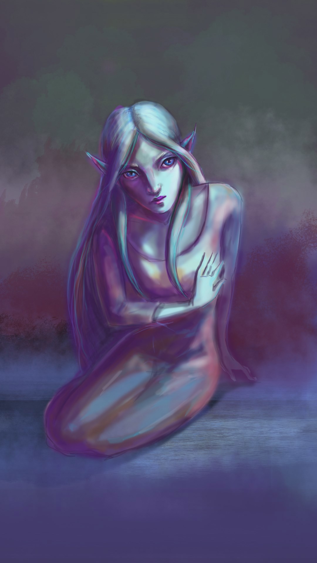 На картине эльфийка изображена во время заточения в подвале клуба: