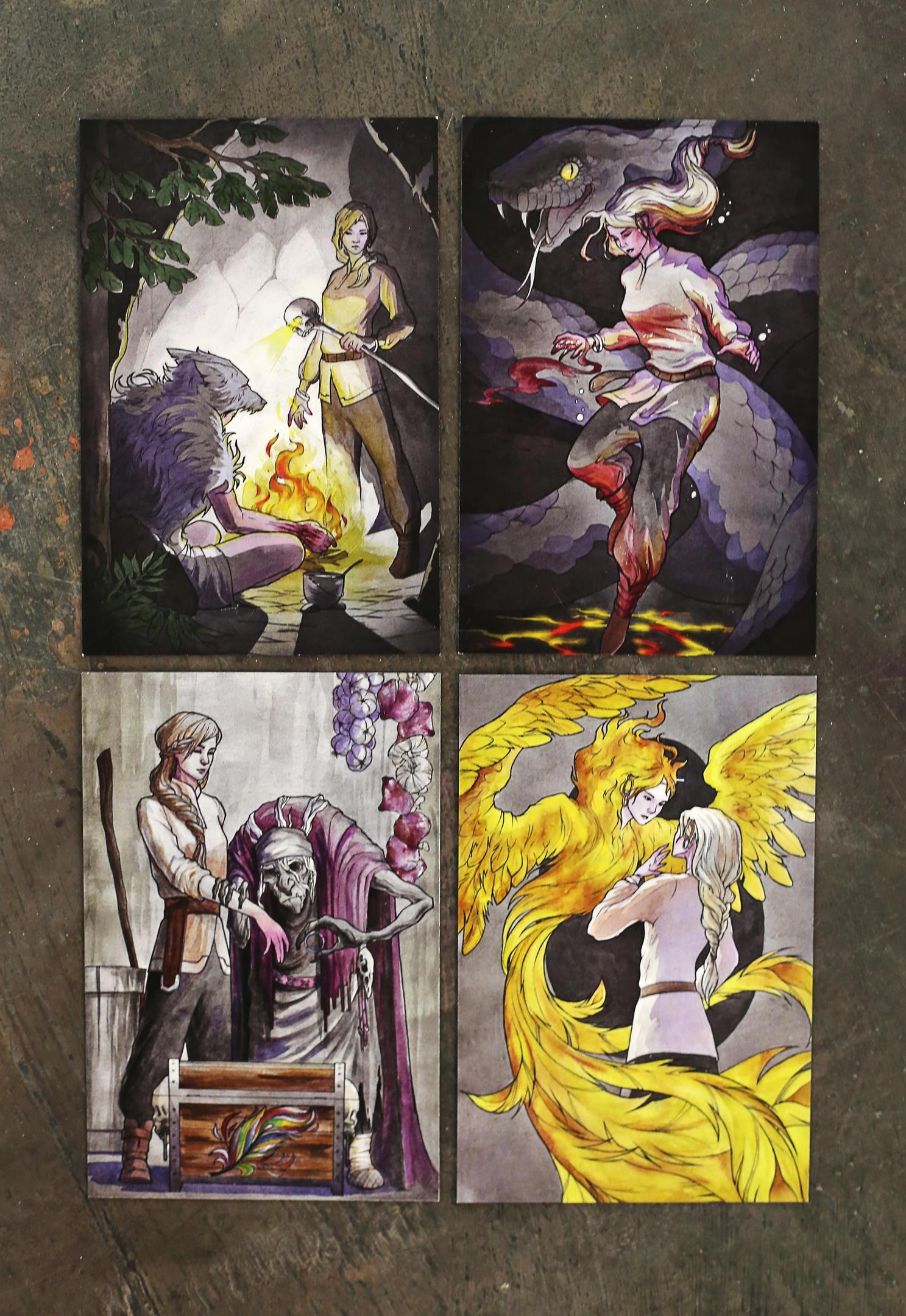 Я думаю, что это было очень хорошей идеей — сделать открытки по книге: Иди через темный лес и разыграть их!