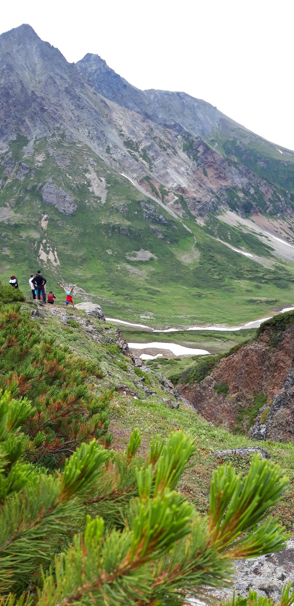 Наверху - горный цирк и окрестности, гуляем, фотографируемся. Попадались группы, в которых были вооруженные мужчины. Слышали выстрелы, потом сказали, что видели медведя, отогнали. А сегодня, кстати, прям в центре Петропавловска видели молодого медведя, засняли видео, как он спускается по лестнице. Дурной, застрелят скорее всего((