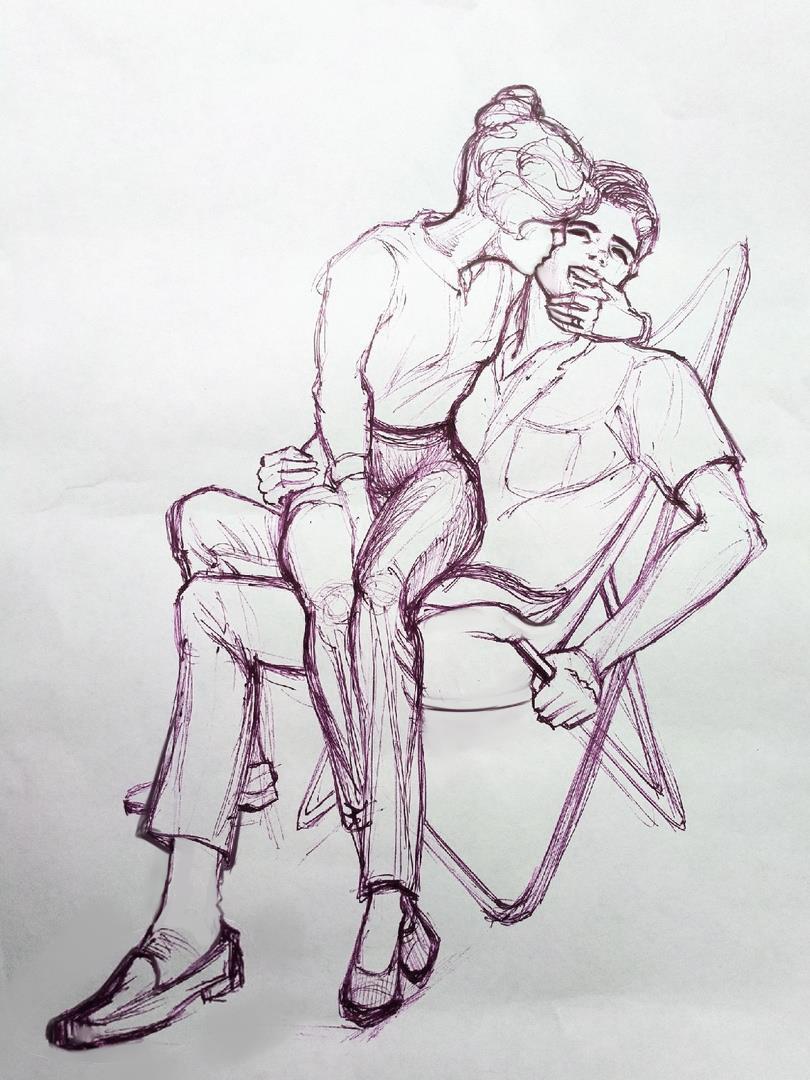 Рисунок шариковой ручкой. Первоначальный набросок и вариант, подкрашенный в цифре