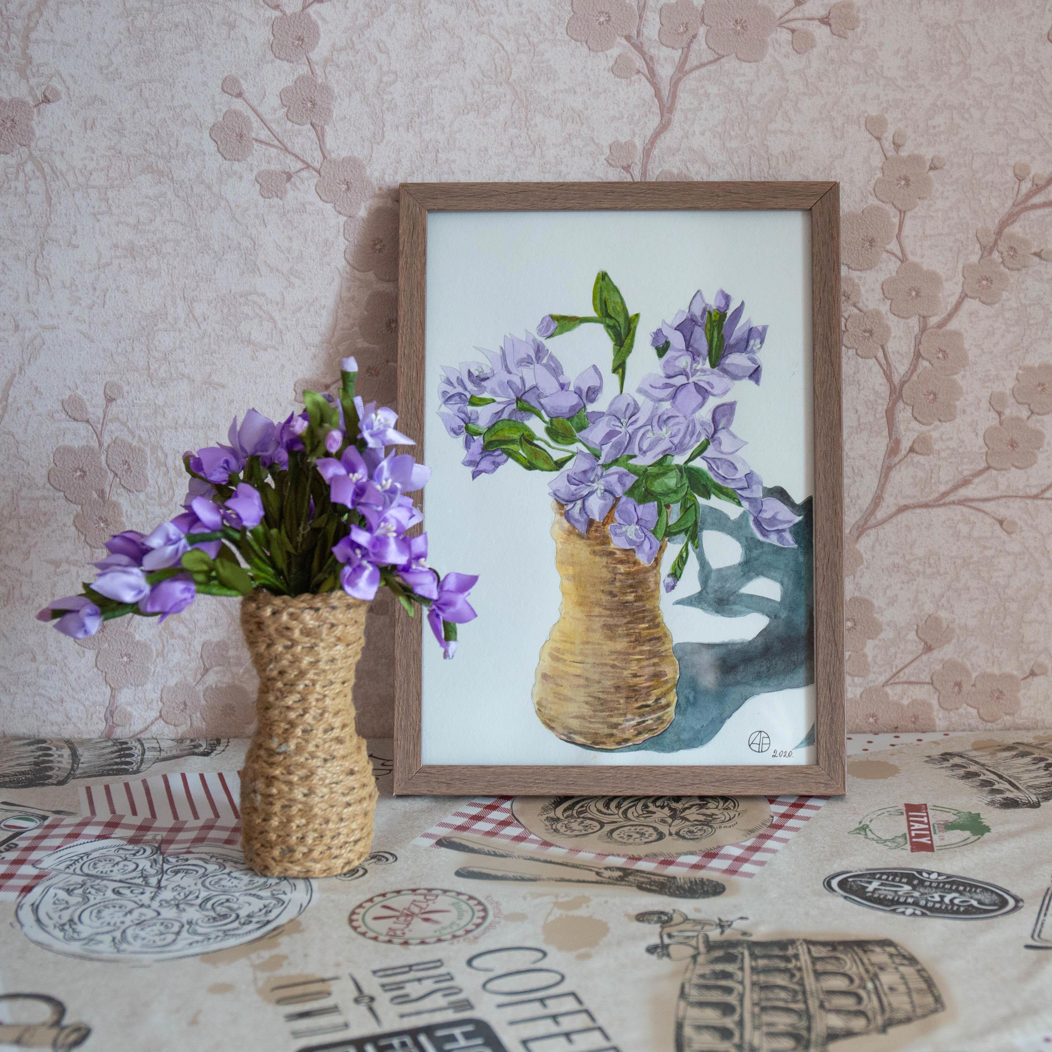 Акварельная живопись с натуры) Натура предоставлена мне моей мамой, искусственные цветы из лент)