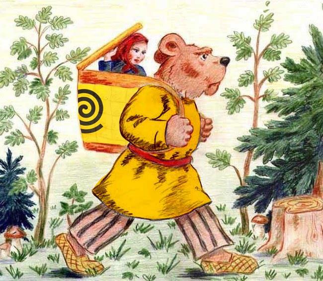 Медведь заинтересованно посмотрел на Волка. Таскать Машу в коробе за спиной ему действительно надоело. Девочка ни минуты не могла сидеть тихо: то подпрыгивала, то дергала его за уши, и при этом болтала без остановки.