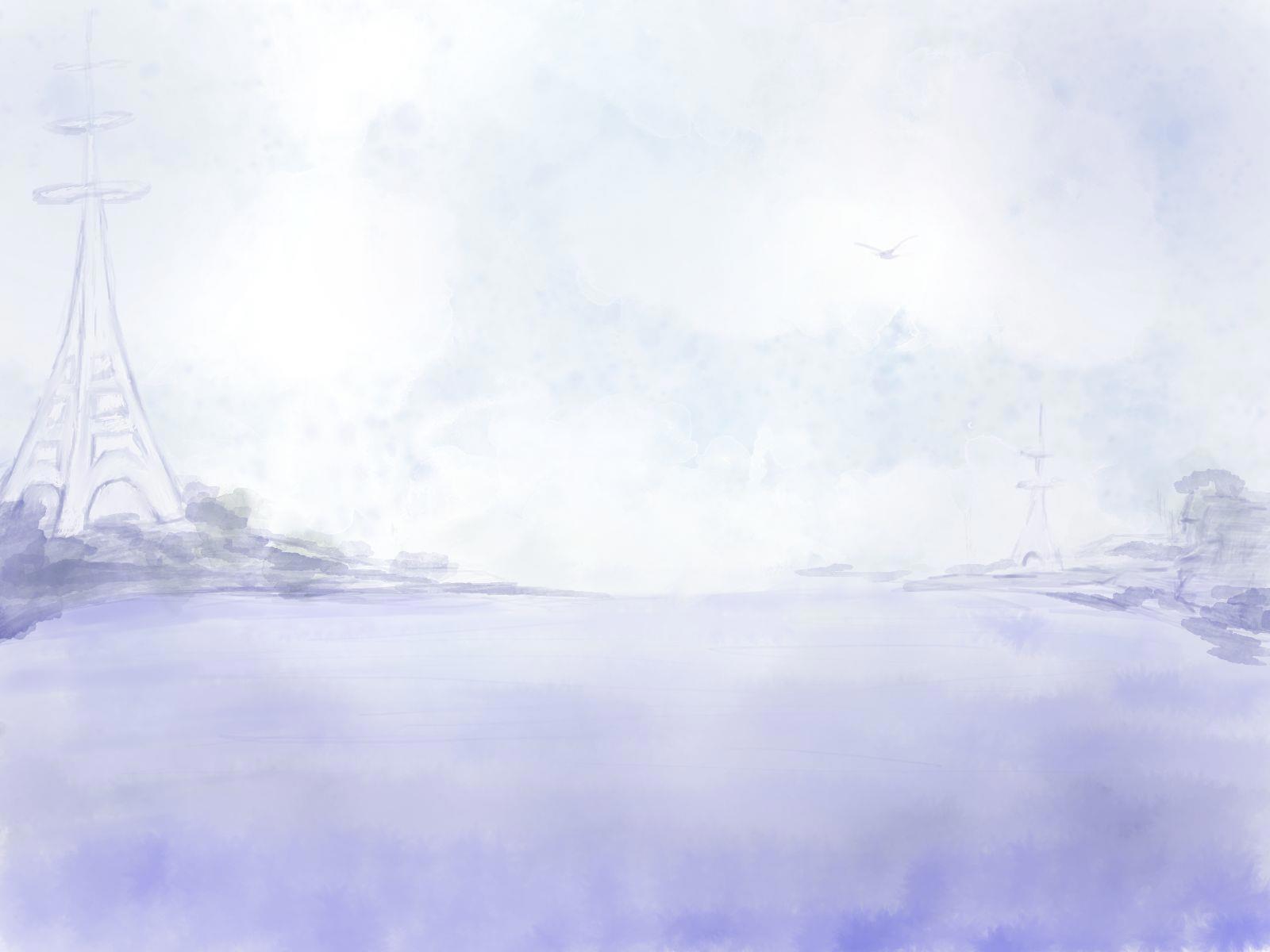 Рисунок Екатерины рождает то самое настроение, которое я хотел бы передать читателю. Башни – хрупкие, воздушные, едва заметные на фоне неба. И всё же это исполинской величины сооружения, по которым можно судить о величии мёртвых богов. А птица, летящая над рекой – великолепная метафора душевного состояния героев. И да, несмотря на то, что в книге достаточно описаний дрянной погоды и грязных городов, я вижу Энландрию именно такой: страна, где много света, много северного неба и много открытой воды.