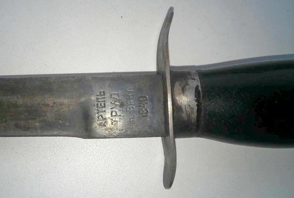 Вот фотографии довоенных изделий. Два верхних ножа сделаны на заводе «Труд» из посёлка Вача, а нижний сделан на Златоустовском инструментальном заводе №259 им В. И. Ленина: