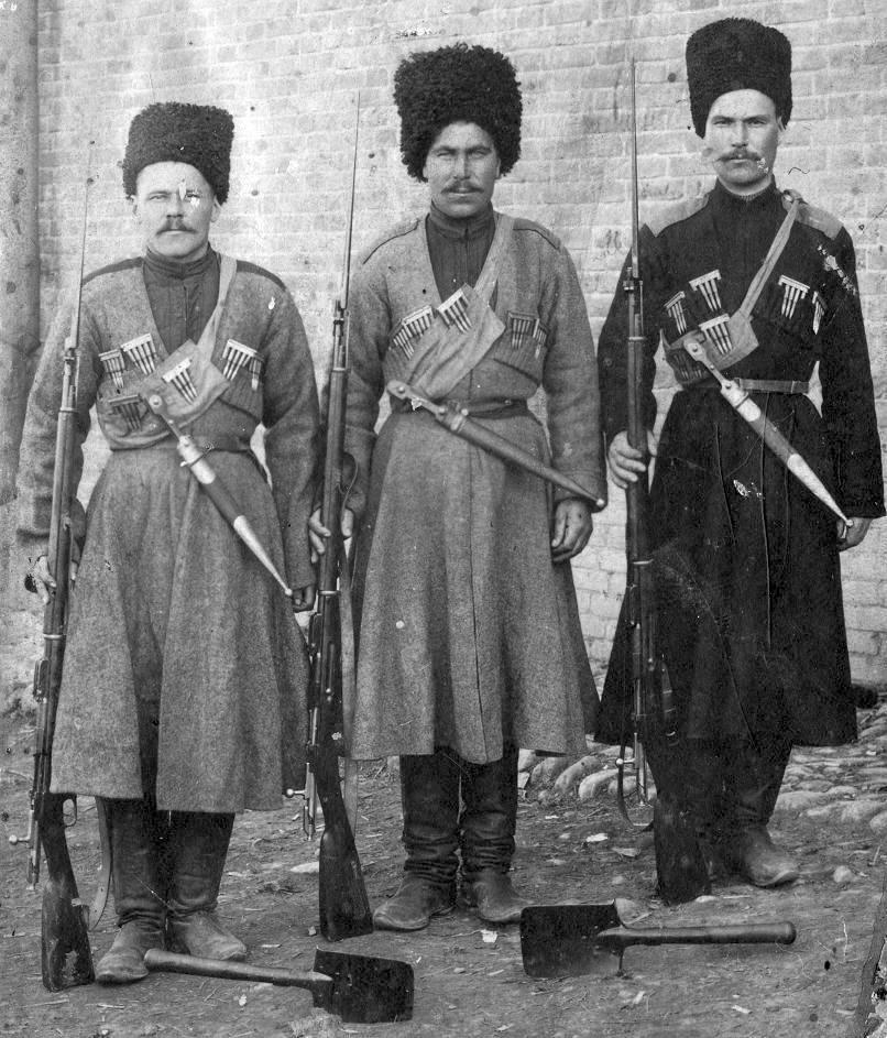 То есть большой кинжал. Такого типа кинжалы до сих пор очень любят на Кавказе, хотя это совсем не значит, что они родом именно оттуда. Можно заметить, что со временем размеры казачьих кинжалов становились несколько скромнее. Очень редко можно встретить на фото казаков с кривыми кинжалами типа бебут (бабут). Эти, вероятнее всего появились в результате централизованного снабжения армии. Дело в том, что у некоторых категорий военнослужащих в русской армии перед Первой Мировой был на вооружении «кривой кинжал». Вот такой (образца 1907 года):