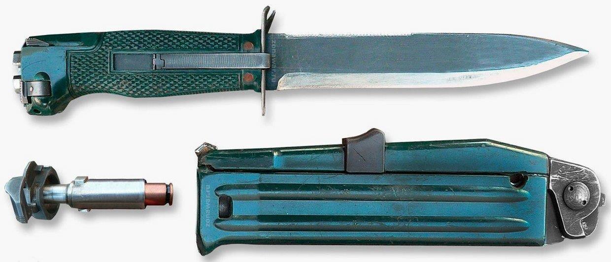 КГБ тоже заказал нашим оружейникам стреляющий нож. Это произошло немного раньше — в середине 70-х. За дело взялись сразу двое. В результате появился вот такой ОЦ-54: