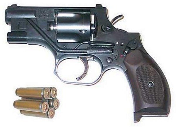 Завершающий проект Игоря Стечкина тоже не совсем обычный. Это бесшумный револьвер "Ворчун" для спецназа. Посмотрите. Ствол снизу, сверху - лазерный целеуказатель... ни шума, ни дыма, ни вспышки. И очень надёжно.