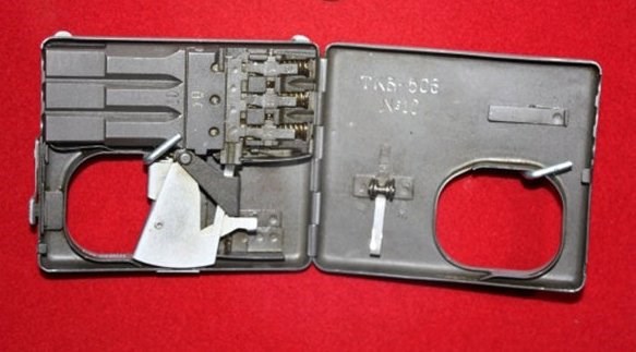 Это — портсигар. Бесшумный, калибра 7,62 мм. Технические характеристики портсигара следующие: размеры — 108х74 мм, патроны специальные беспламенные — 3 шт.